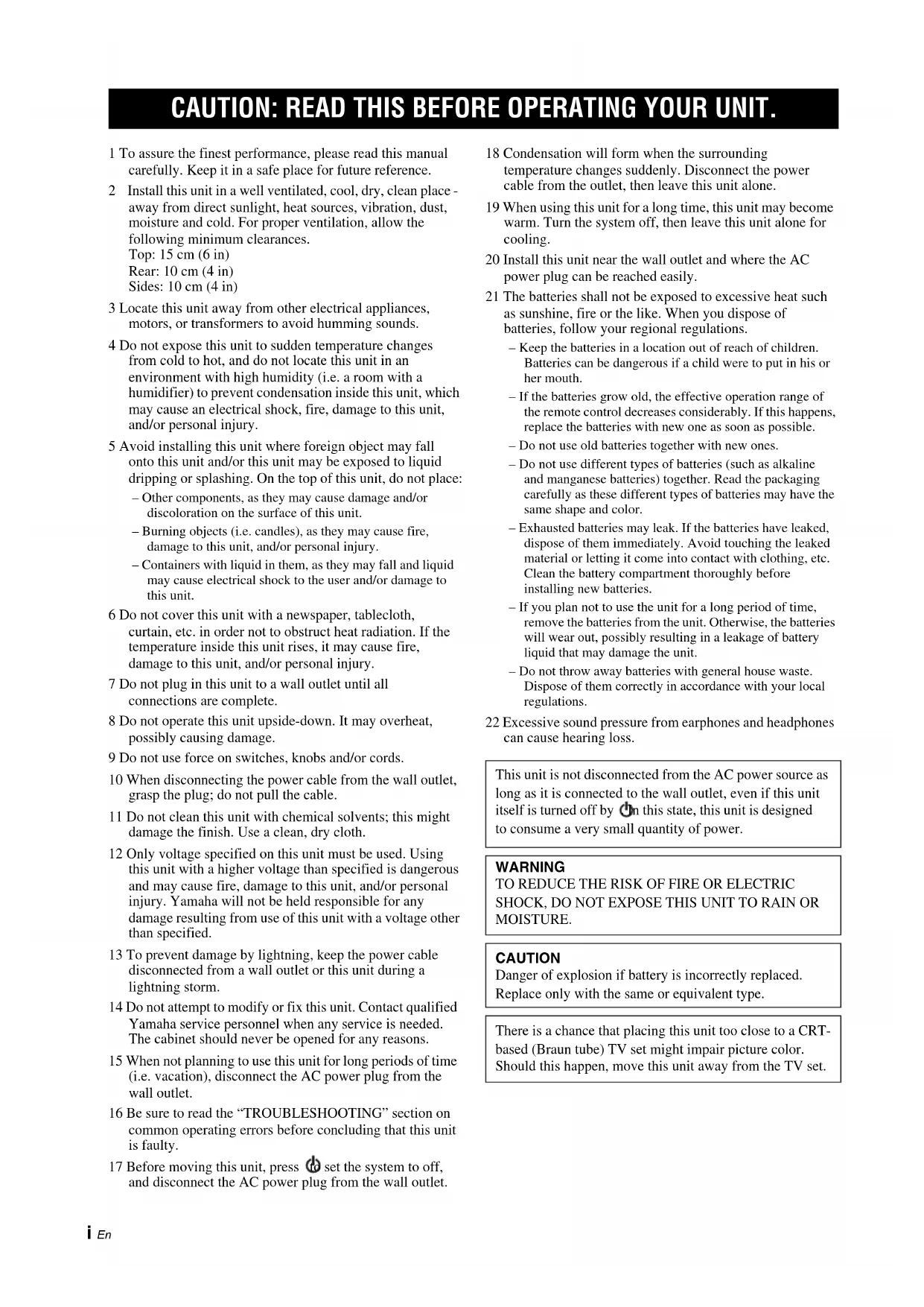 2 Install this unit in a well ventilated, cool, dry, clean place -