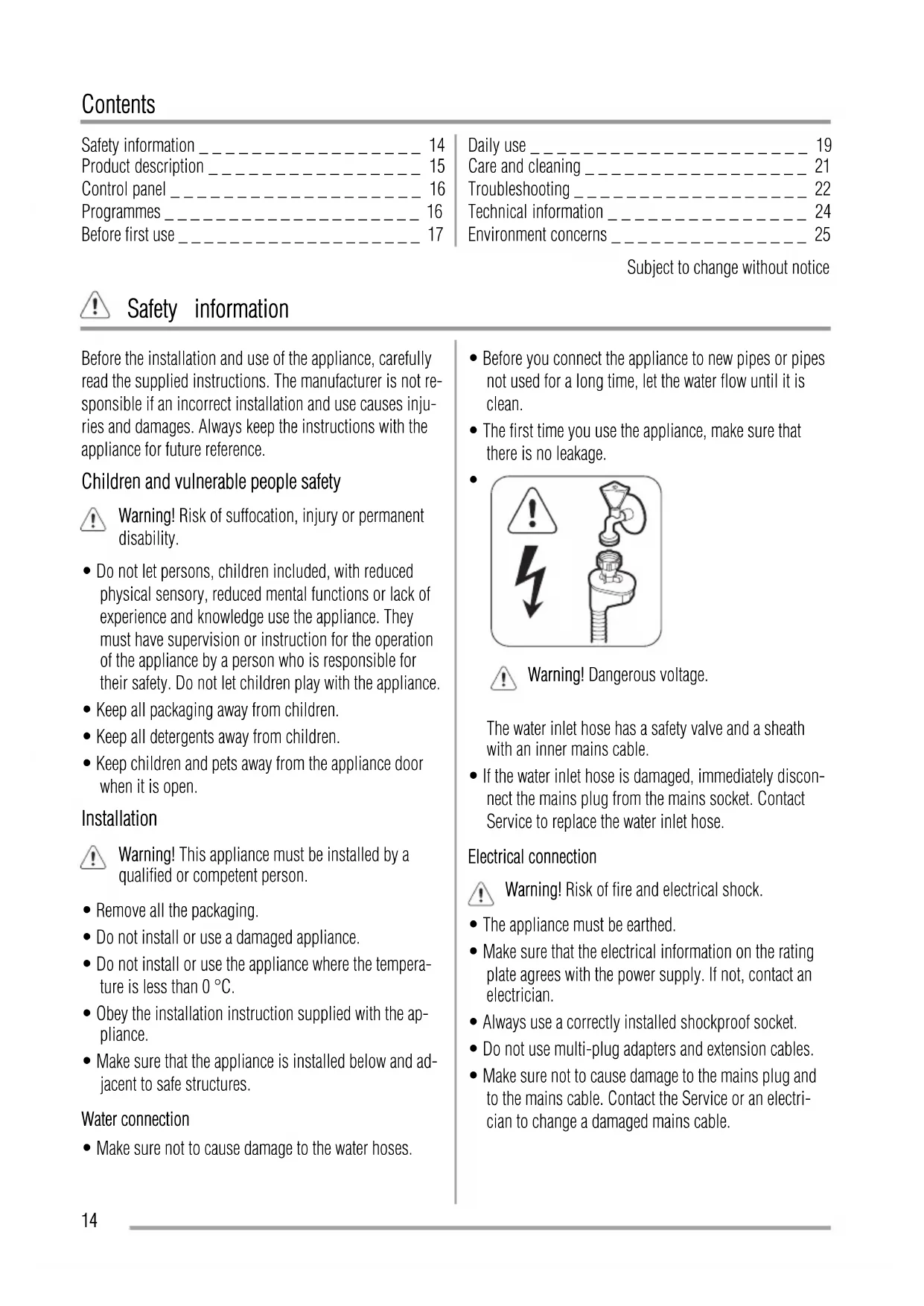 • Do not change the specification of this appliance.