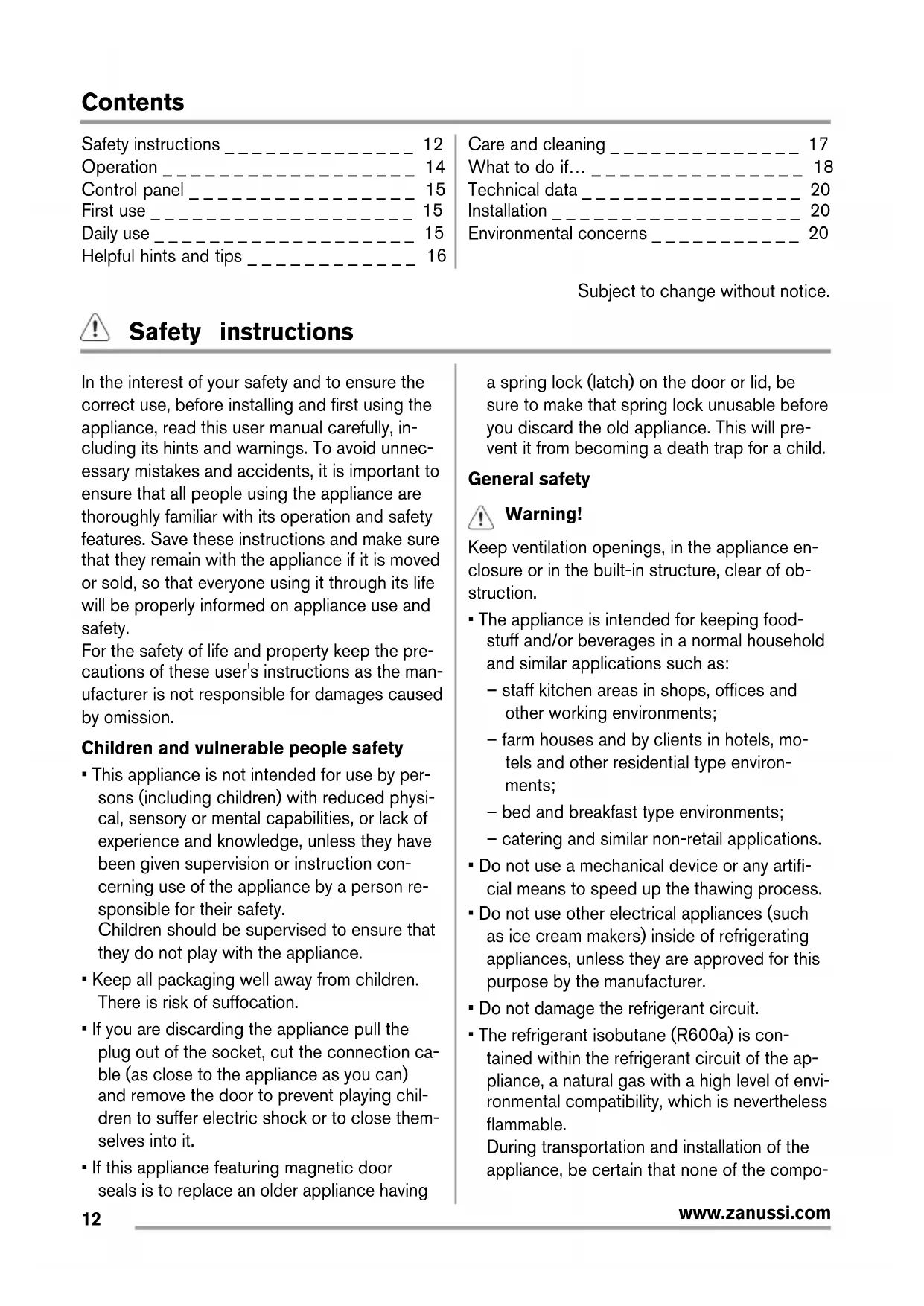 ZFC731WAP - Freezer ZANUSSI - Free user manual and instructions