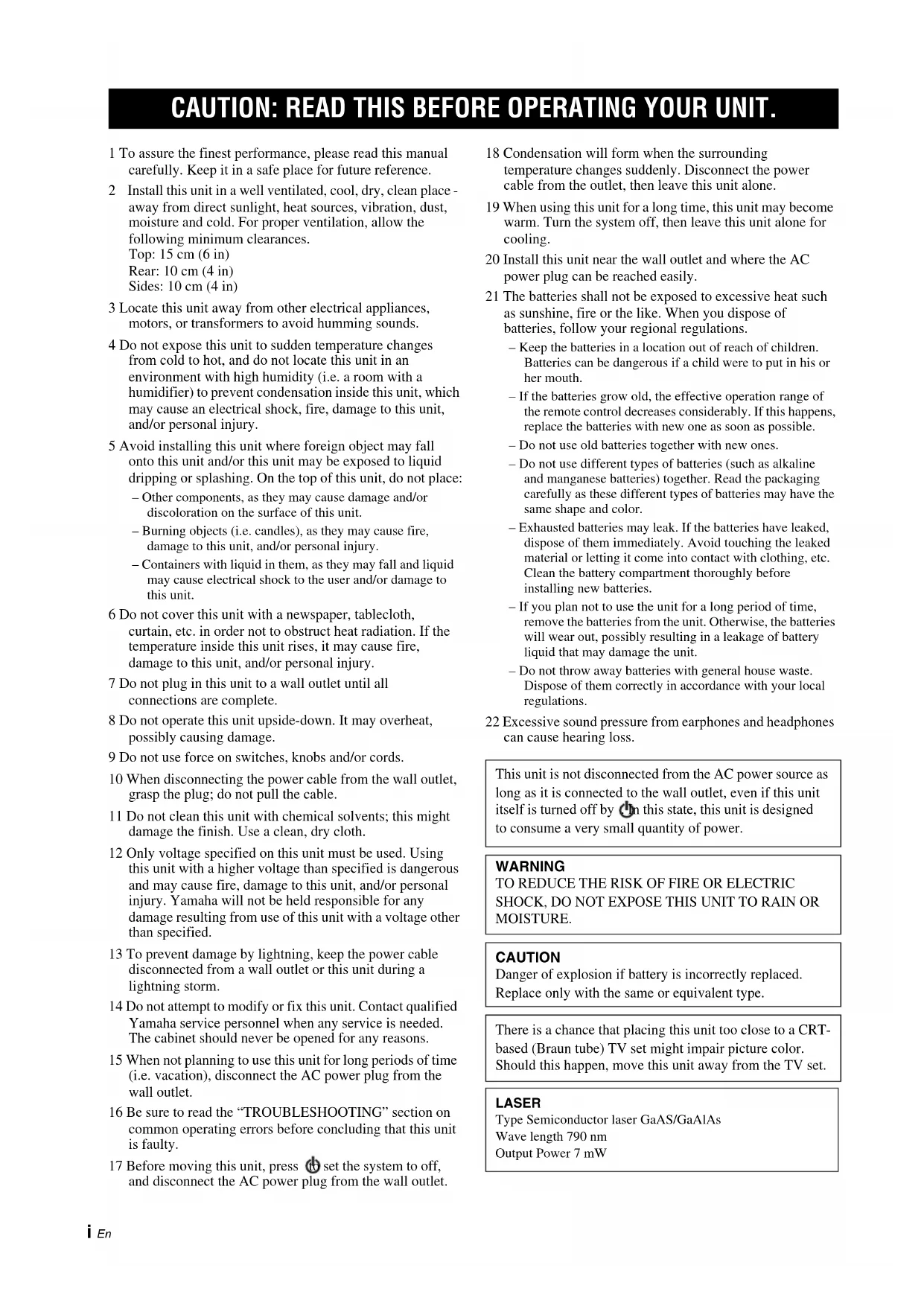 CAUTION: READ THIS BEFORE OPERATING YOUR UNIT.