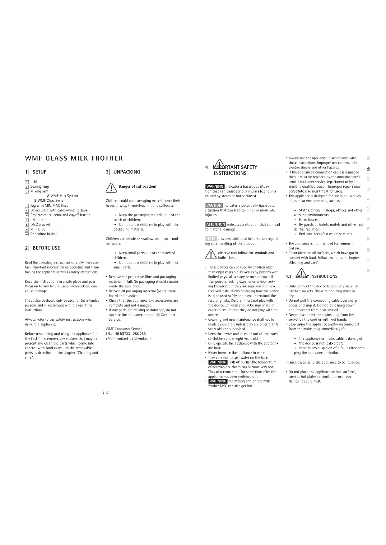 WARNING the jug and handle of the WMF Choc System (B) may be hot!
