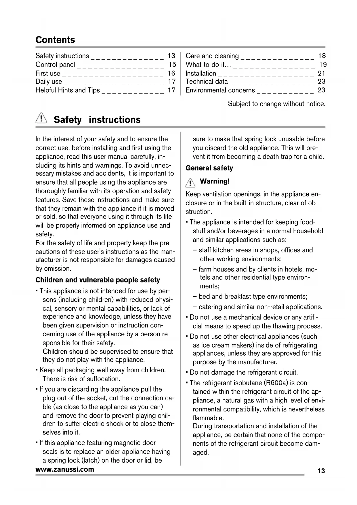 Download the instructions for your Freezer in PDF format for free! Find your manual ZFT11110WA - ZANUSSI and take your electronic device back in hand. On this page are published all the documents necessary for the use of your device. ZFT11110WA by ZANUSSI.