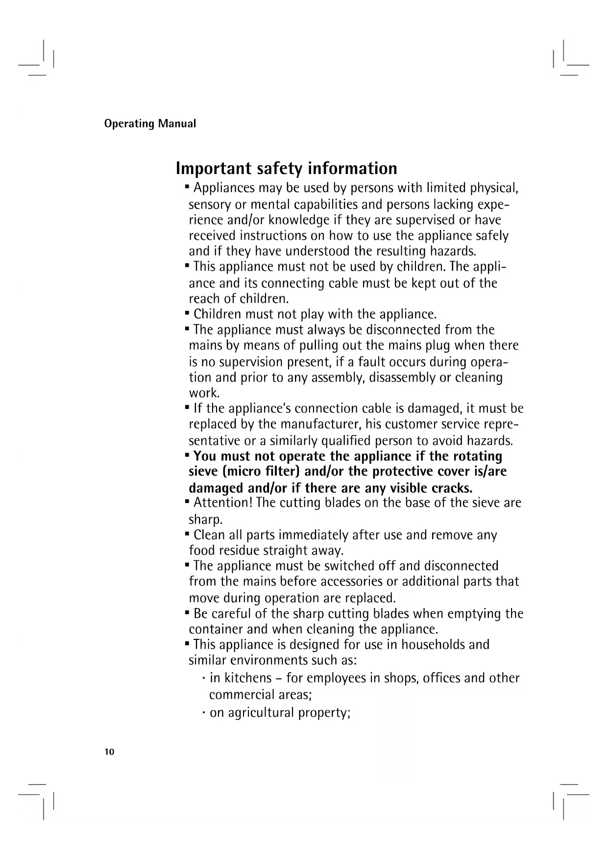 The appliance is not intended for commercial use, but only for the preparation of