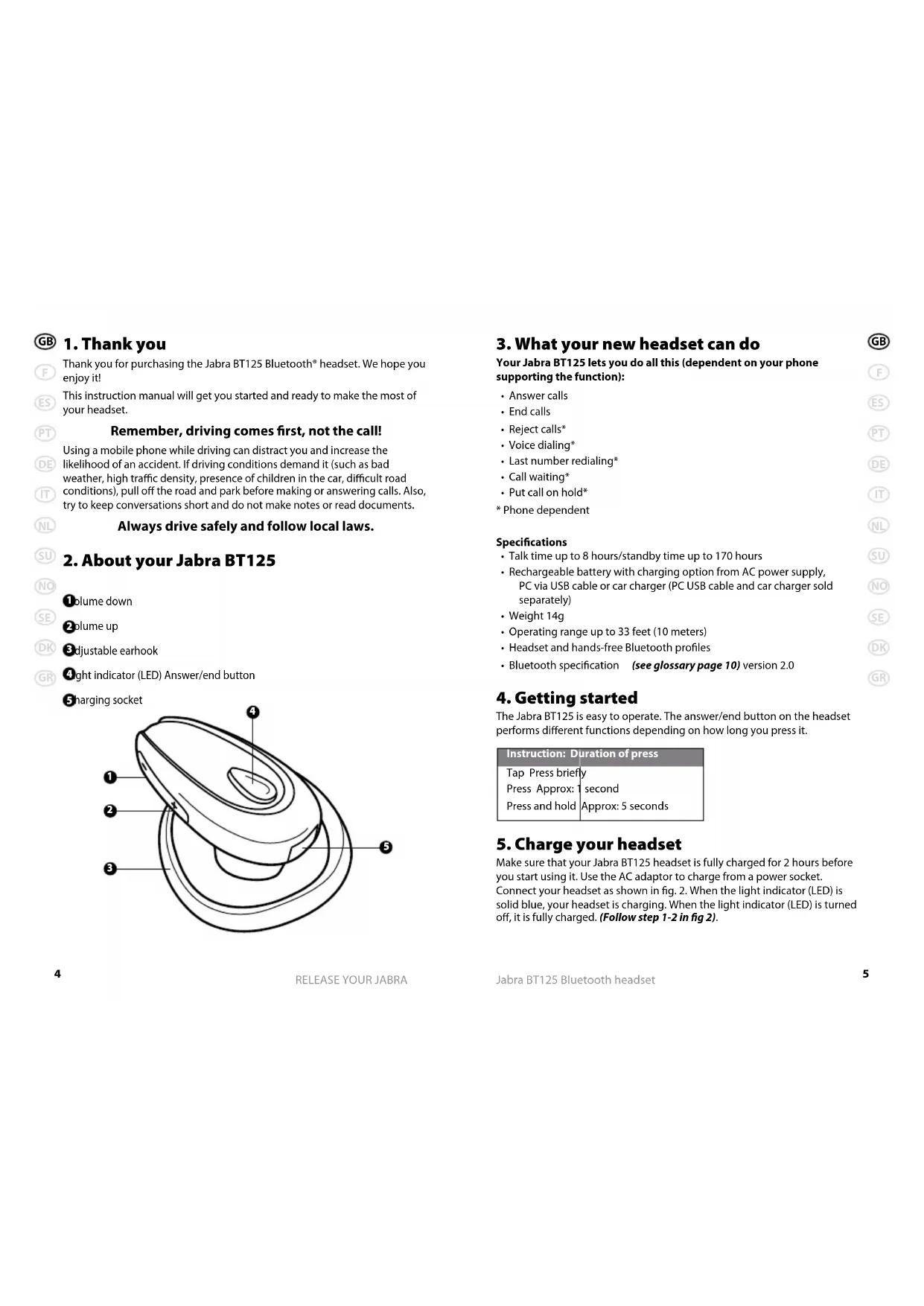 RELEASE YOUR JABRA GB F ES PT DE IT NL SU NO SE DK GR