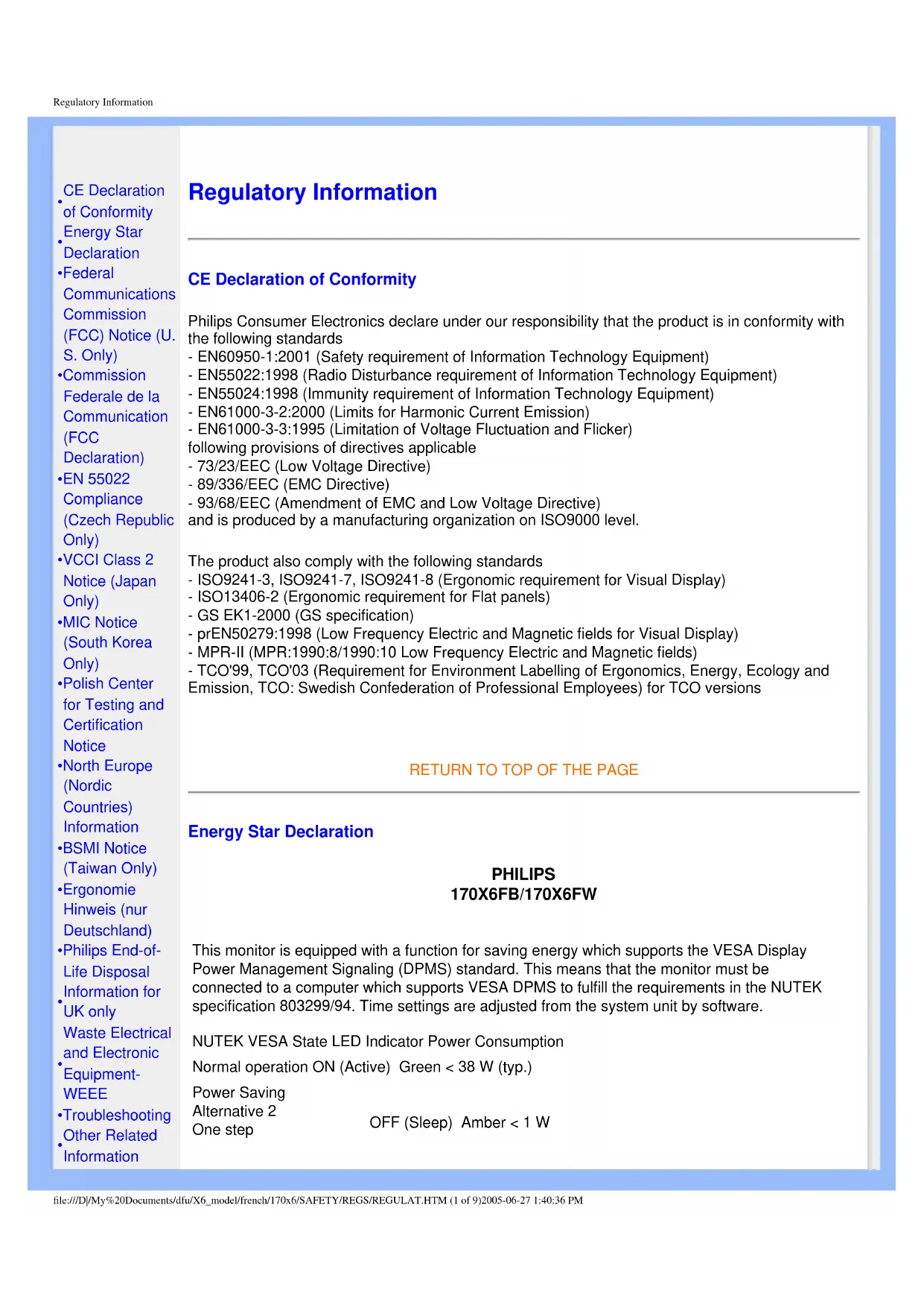 RETURN TO TOP OF THE PAGE Energy Star Declaration