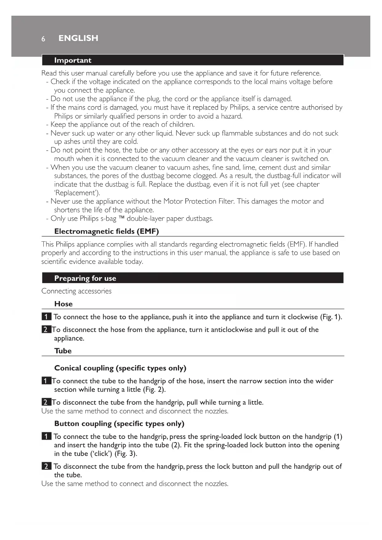 - Only use Philips s-bag ` double-layer paper dustbags.