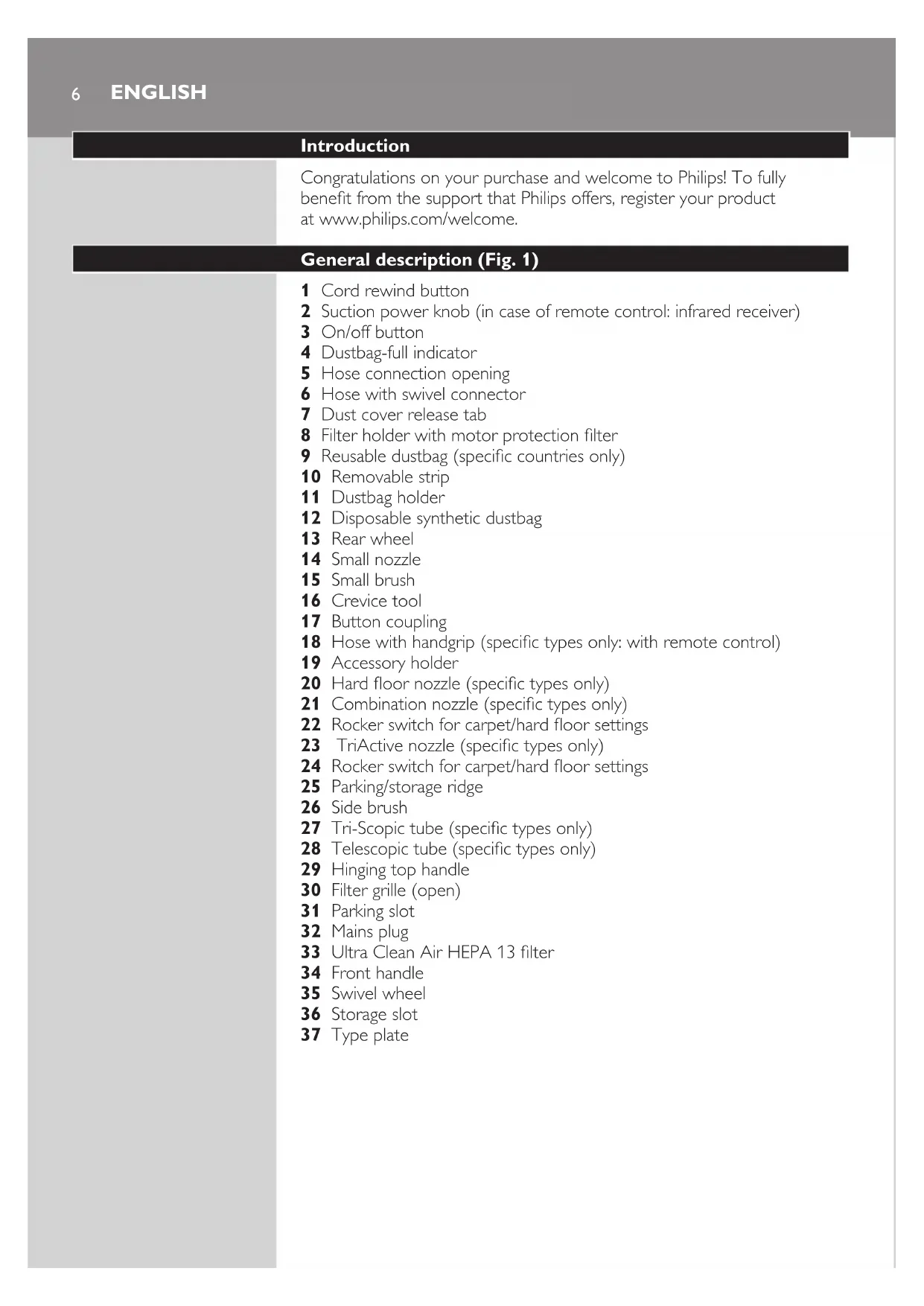 cleaner, always replace the HEPA lter every 2 years with an original Philips