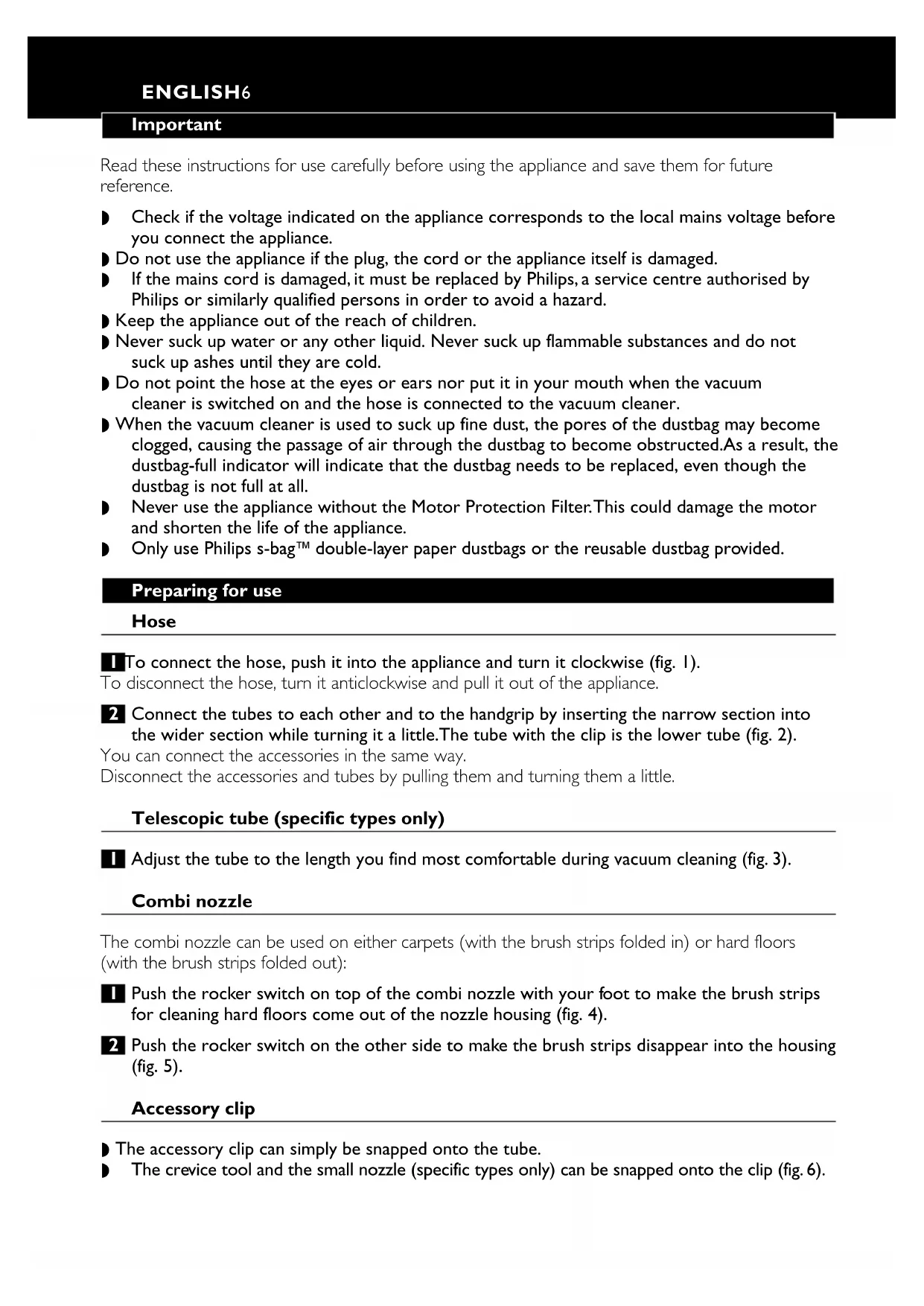 ◗ Only use Philips s-bag` double-layer paper dustbags or the reusable dustbag provided.