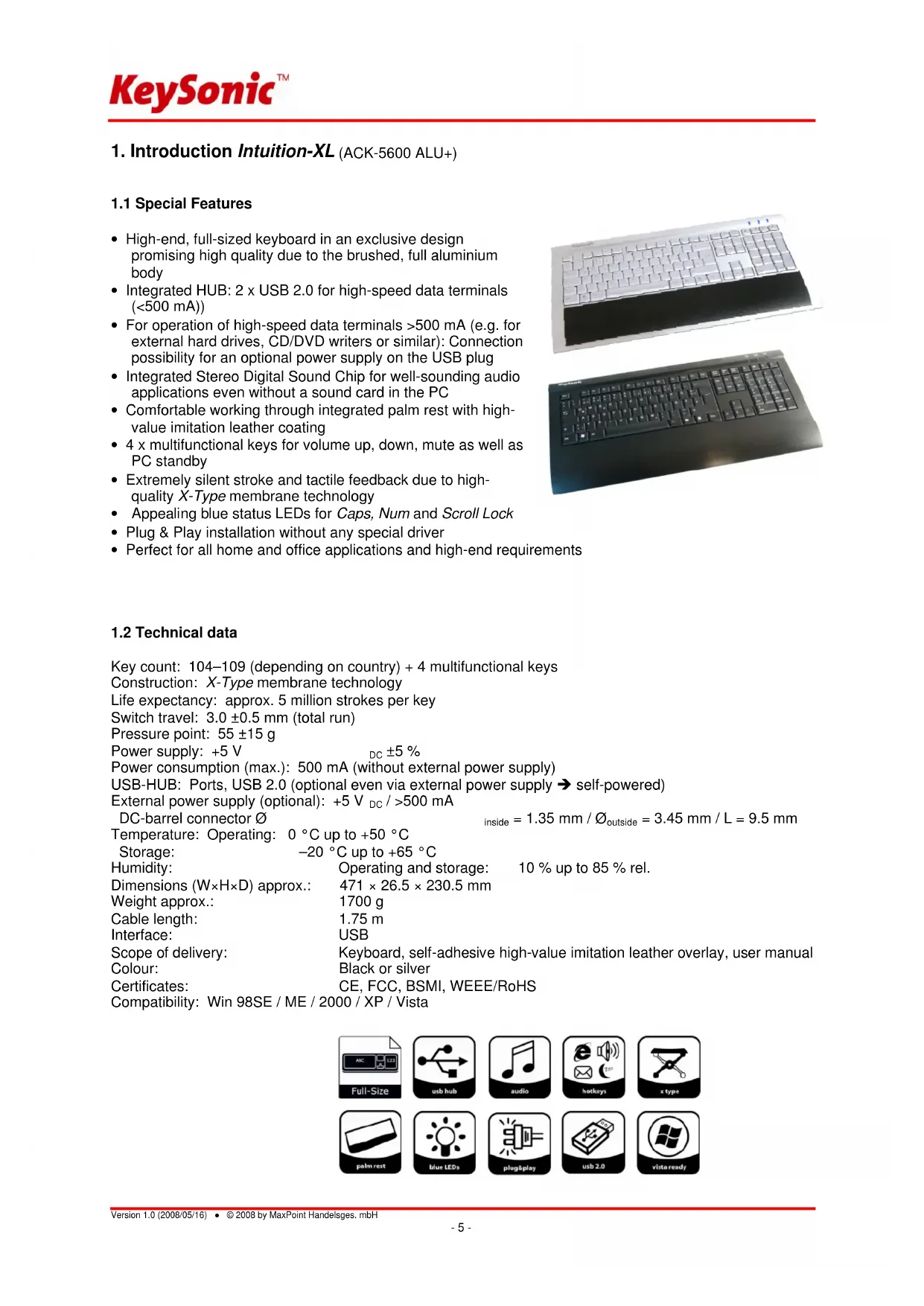 ACK5600 ALU+ - Keyboard KeySonic - Free user manual and instructions