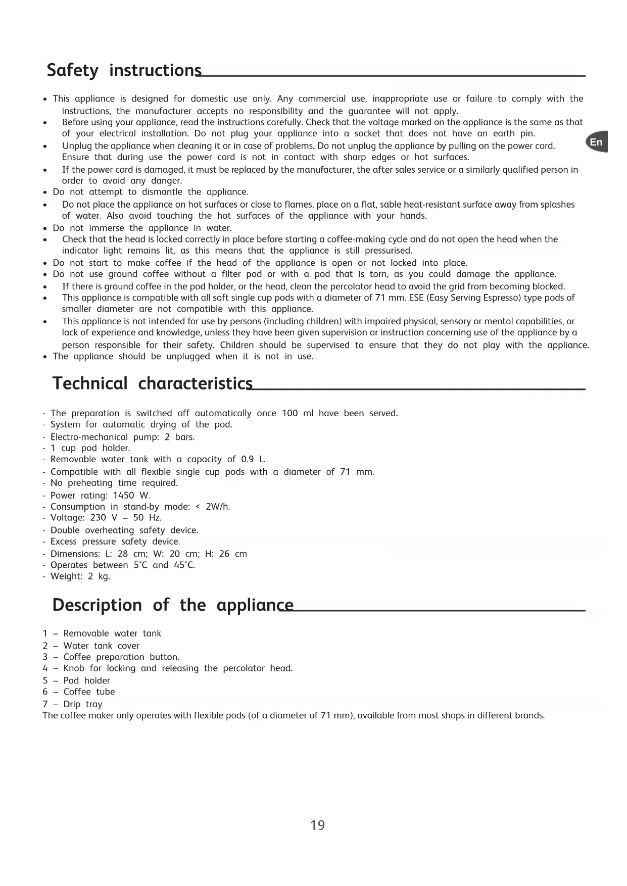 cafetie?re Direct serve CW 100 TEFAL.qxd:Cafet Tefal Express 01_FR. qxd 20/03/09 11:53 Page 18Safety instructions