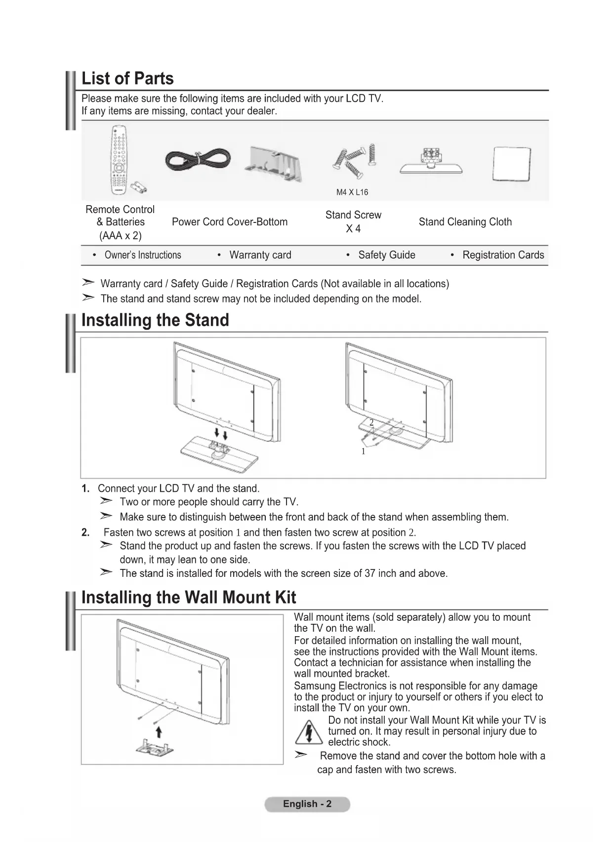 CONNECTING AND PREPARING YOUR TV List of Parts 2