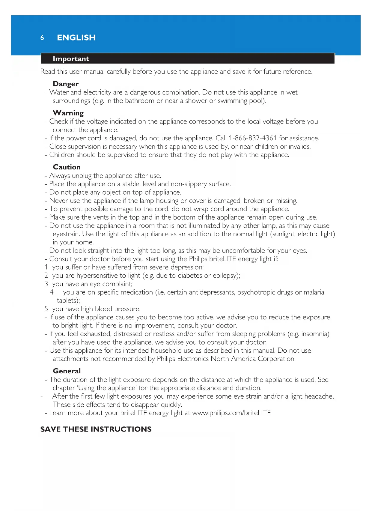 - Learn more about your briteLITE energy light at www.philips.com/briteLITE SAVE THESE INSTRUCTIONS ENGLISHIntroduction