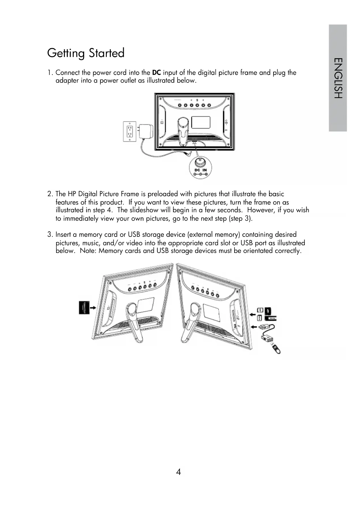 2. The HP Digital Picture Frame is preloaded with pictures that illustrate the basic
