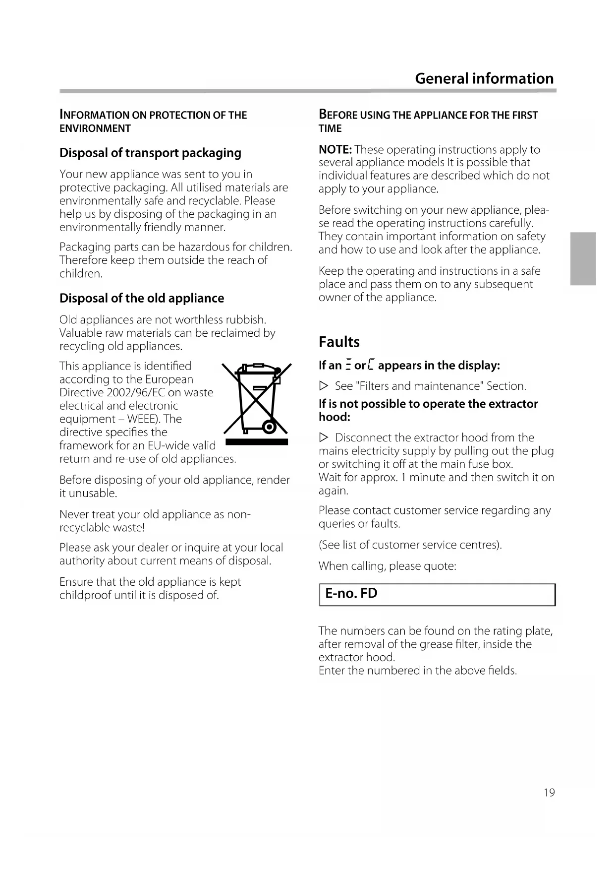Before using the appliance for the rst time 19
