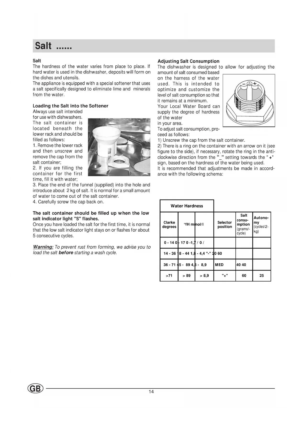 GB Safety Is a Good Habit to Get Into NOTICECarefully read the instructions contained in this manual, as theyprovide important information which is essential to safe and properinstallation, use and maintenance of the appliance.This appliance complies with the following EEC directives:- 73/23/EEC of 19/02/73 (Low Voltage) and subsequent modifications; - 89/336/EEC of 03/05/89 (Electromagnetic Compatibility)and subsequent modifications.- 97/17/EEC Labelling1.Carefully dispose of the packing material.2.After removing the packing, check to make sure that the applianceis not damaged. If in doubt, contact a qualified professional.3.The dishwasher must only be used by adults for the washing ofhousehold dishes and cooking utensils.4.Fundamental rules to follow when using the appliance:- Never touch the dishwasher when barefoot or with wet hands orfeet;- We discourage the use of extension cords and multiple sockets;- During installation, the power supply cord must not be excessivelyor dangerously bent or flattened;- If the appliance is not operating properly or maintenance mustbe performed, disconnect the appliance from the power supply. Close-up View (control panel) 5.Keep detergents out of the reach of children, who must also bekept away from the dishwasher when it is open.6.This appliance cannot be installed outdoors, not even if the area inwhich it is installed is covered by a roof; it is also very dangerous toleave it exposed to the rain and elements.7.Do not touch the heating element during or after a wash cycle.8.Do not lean or sit on the door when it is open, as this could overturnthe dishwasher.9.If the appliance malfunctions, turn off water supply to the applianceand disconnect the plug from the wall socket. Then, consult thesection entitled, "Troubleshooting." If you cannot resolve theproblem, contact a service centre.10.Appliances which are no longer being used must be madeinoperable by cutting the power supply cord and removing the doorlock. A: ON-OFF button