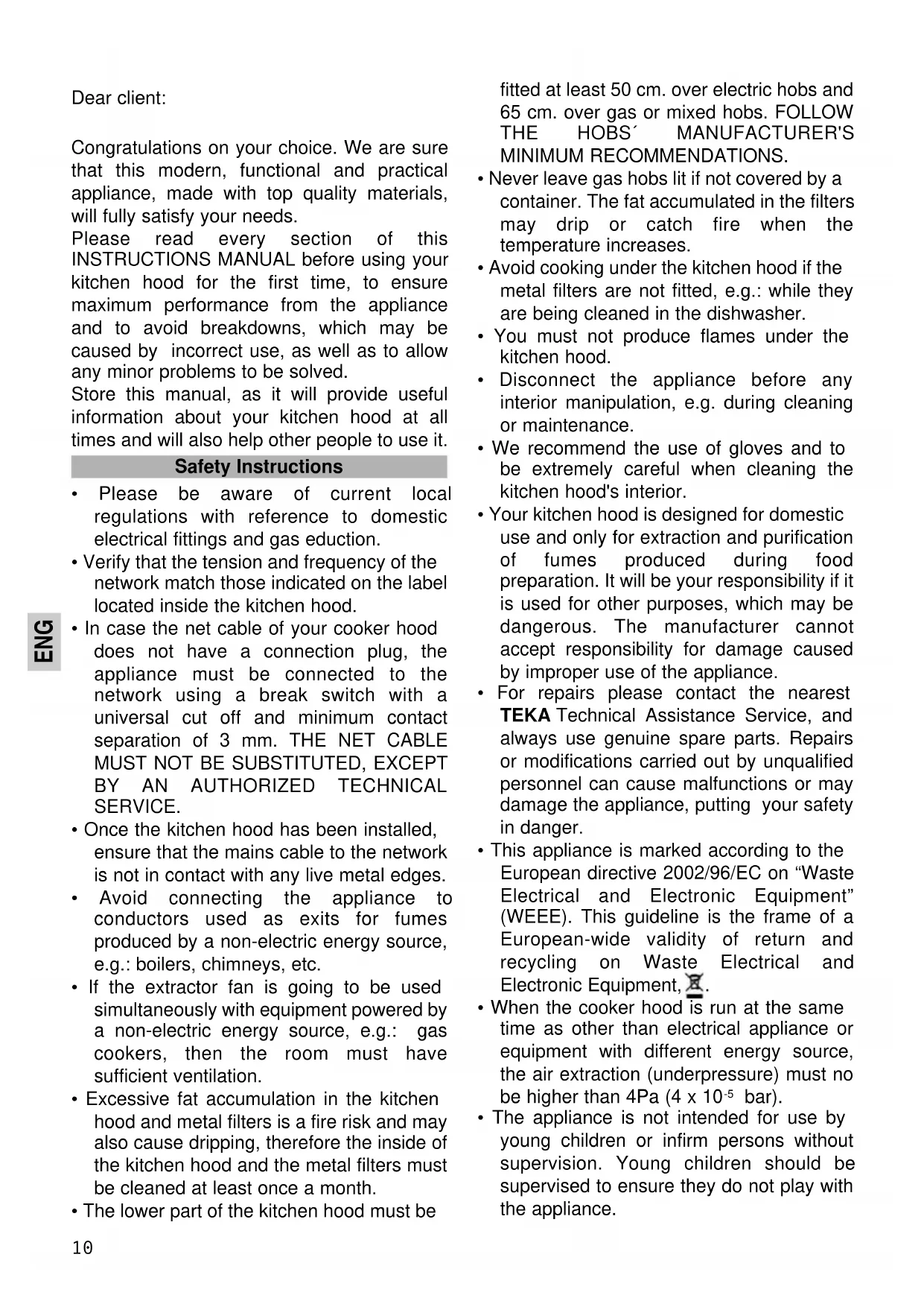 USER MANUAL DH 60 TEKA