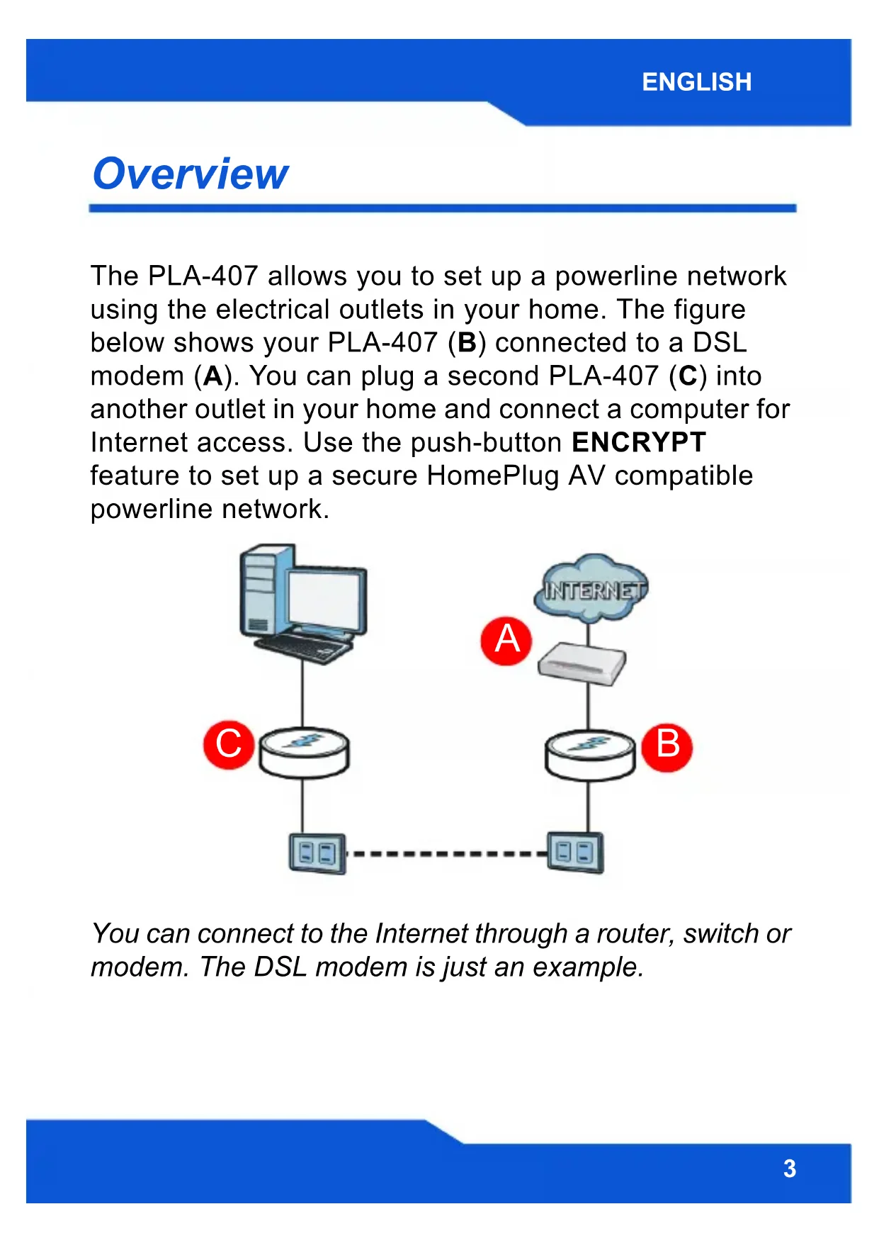 1. Connect the PLA-407 to a Cable/DSL Modem or