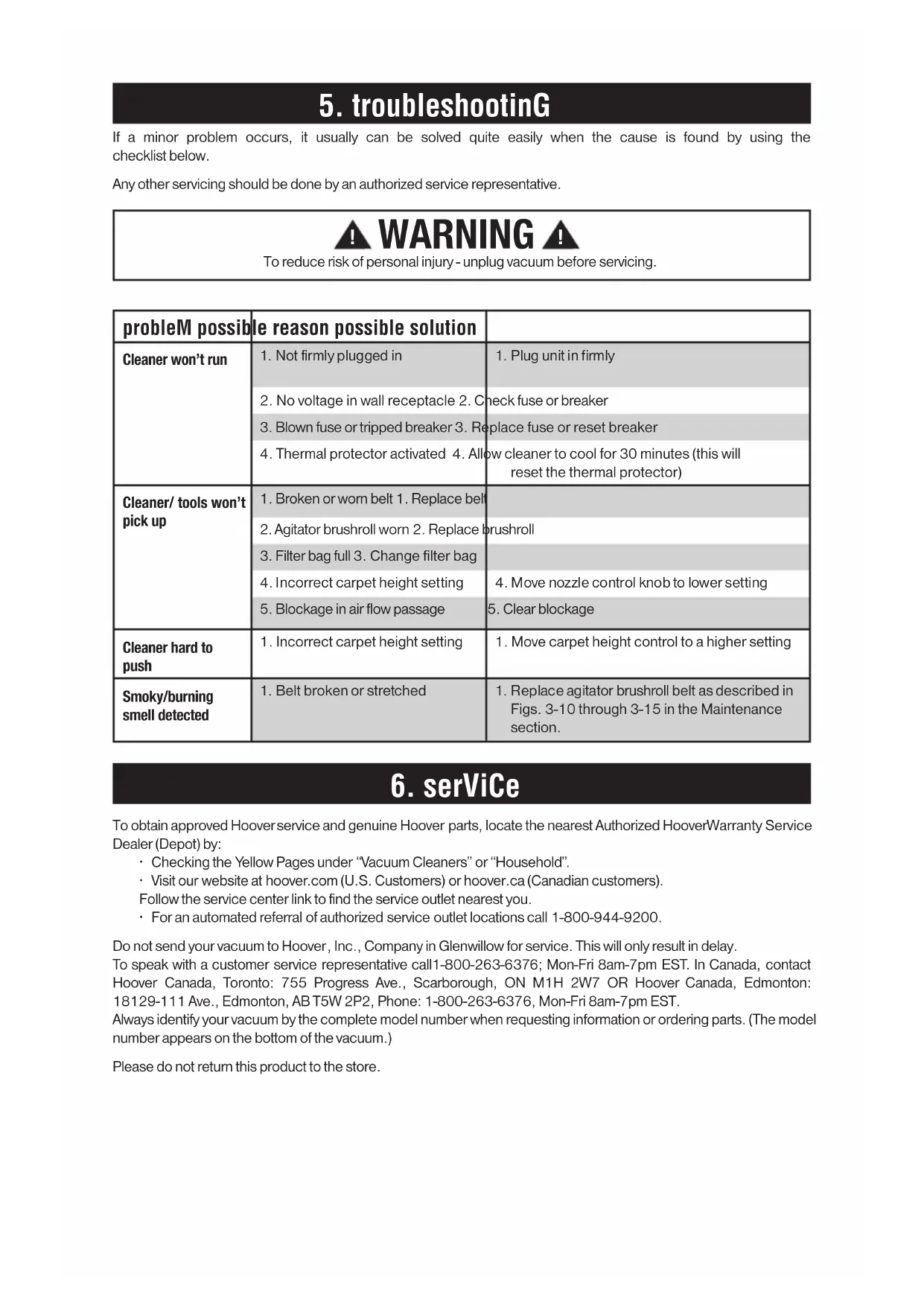 • Visit our website at hoover.com (U.S. Customers) or hoover.ca (Canadian customers).