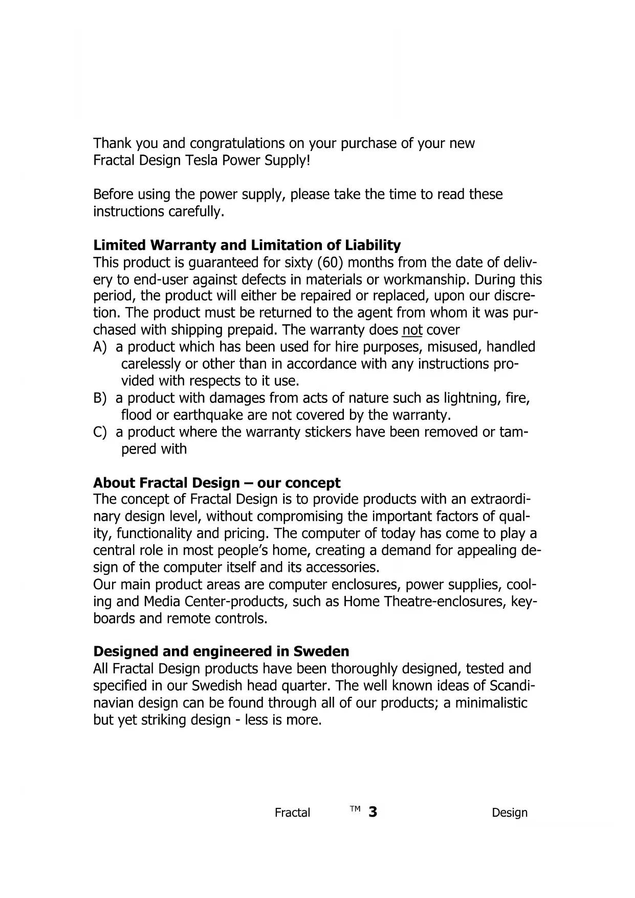 Thank you and congratulations on your purchase of your new Fractal Design Tesla Power Supply!