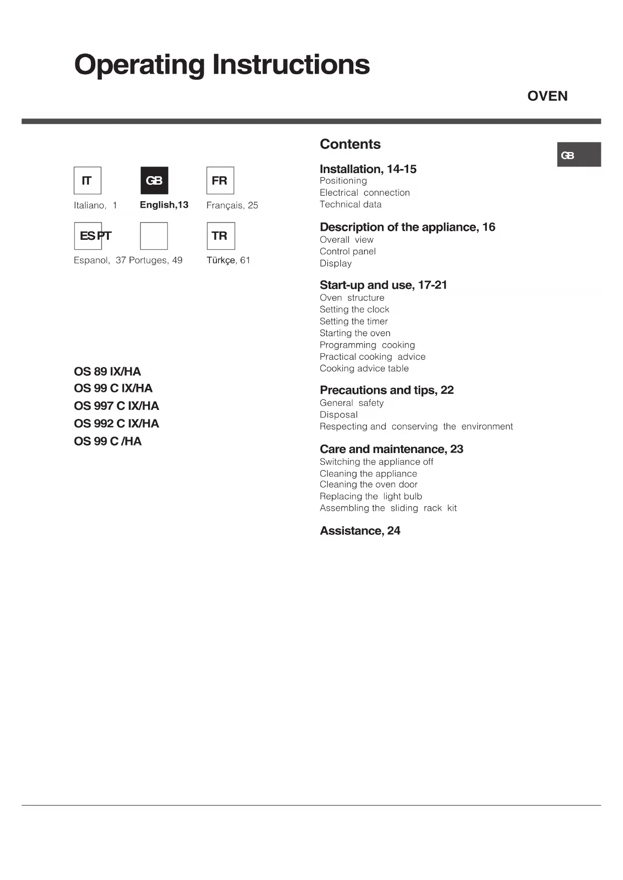 USER MANUAL OS 992 C IX HA HOTPOINT-ARISTON