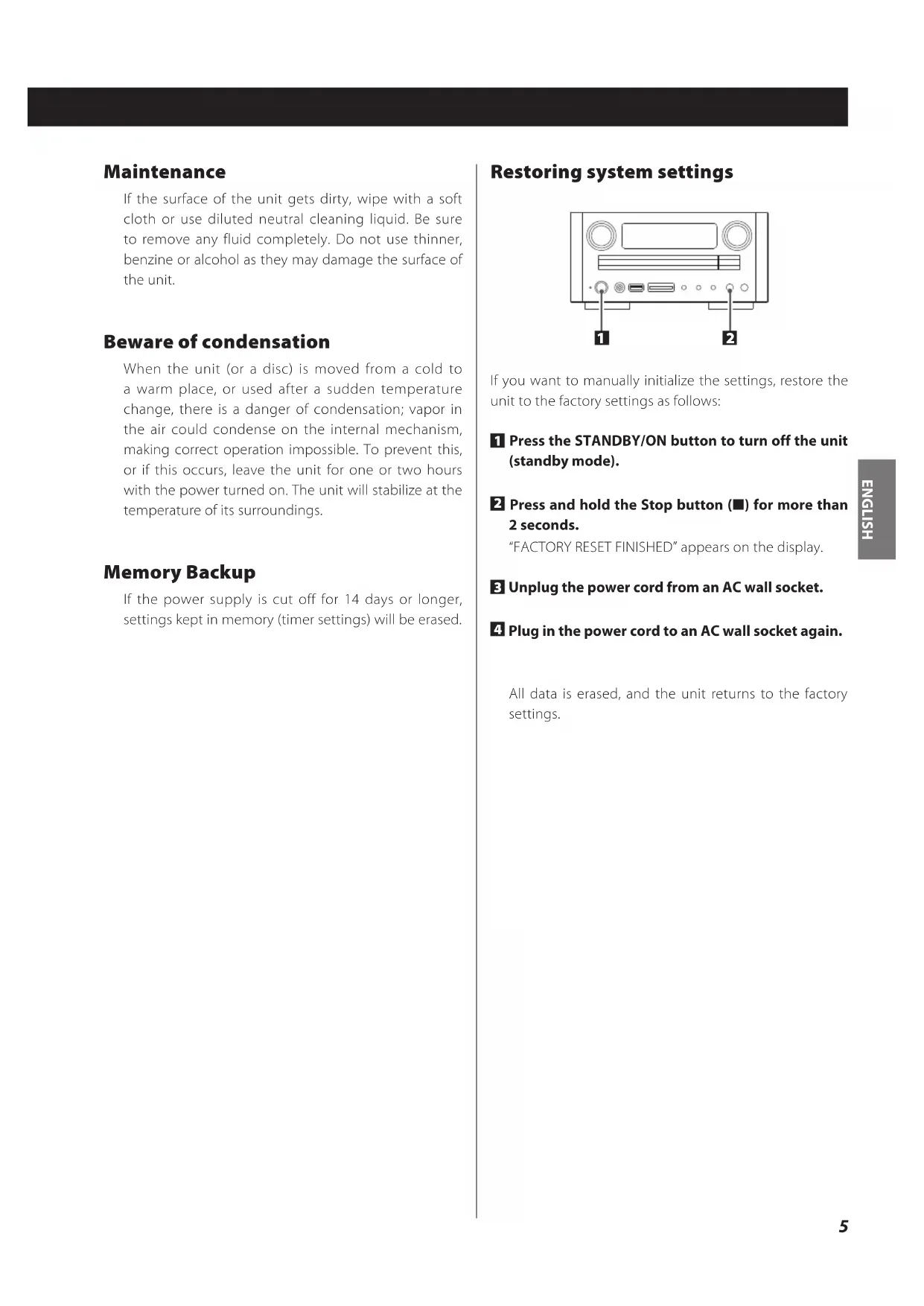 power cord from the outlet and plug it in again.ENGLISH