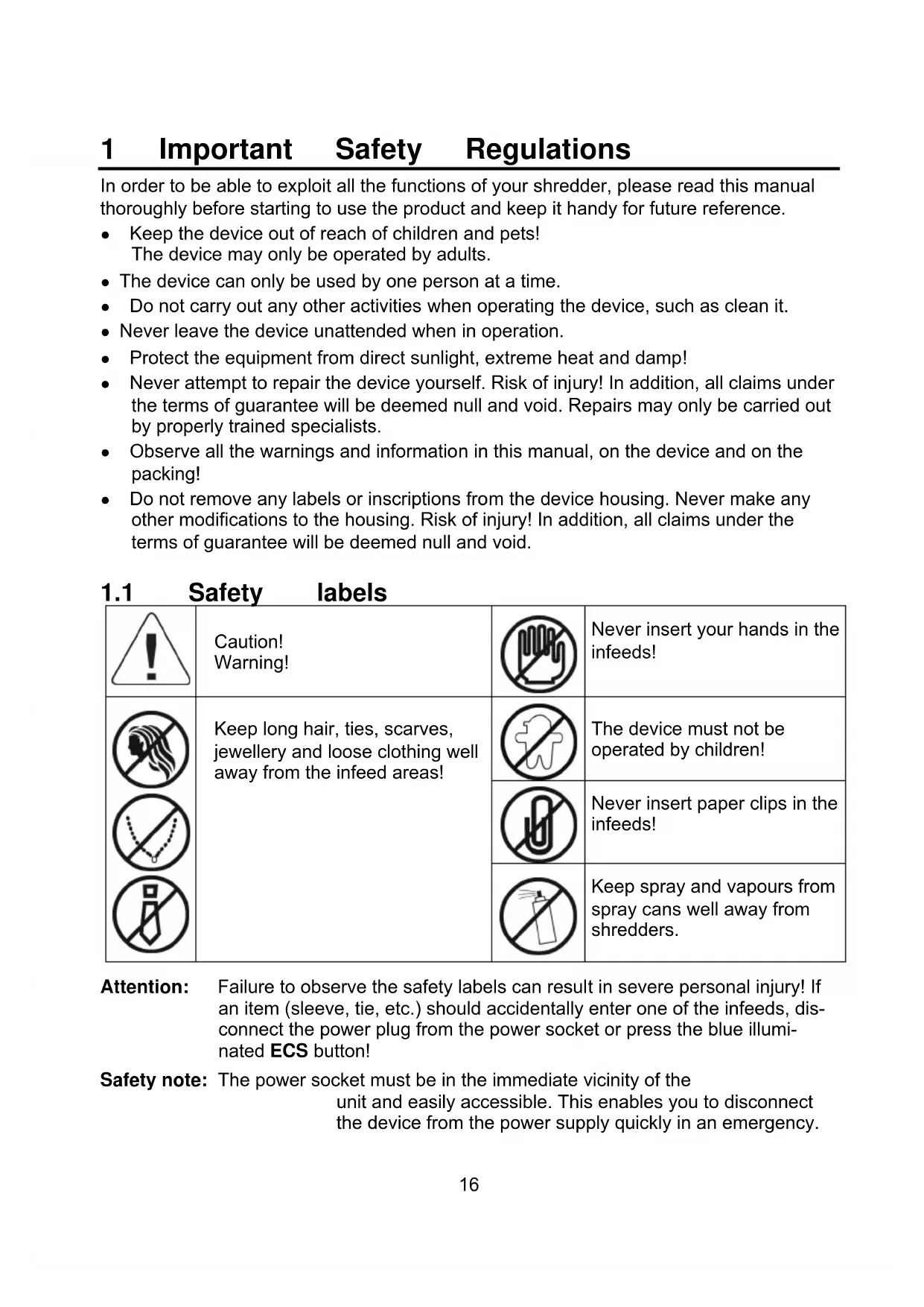 ● Only use the ECS 615.2 CCD shredder to shred paper, CDs, DVDs and credit cards