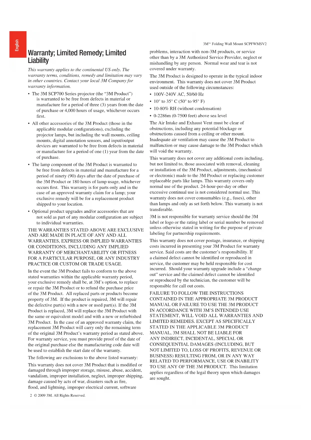 3M warrants that when the 3M Product is used according to 3M’s Intended Use Statement (www.3M.com/meetings), it will perform satisfactorily for the warranted durability
