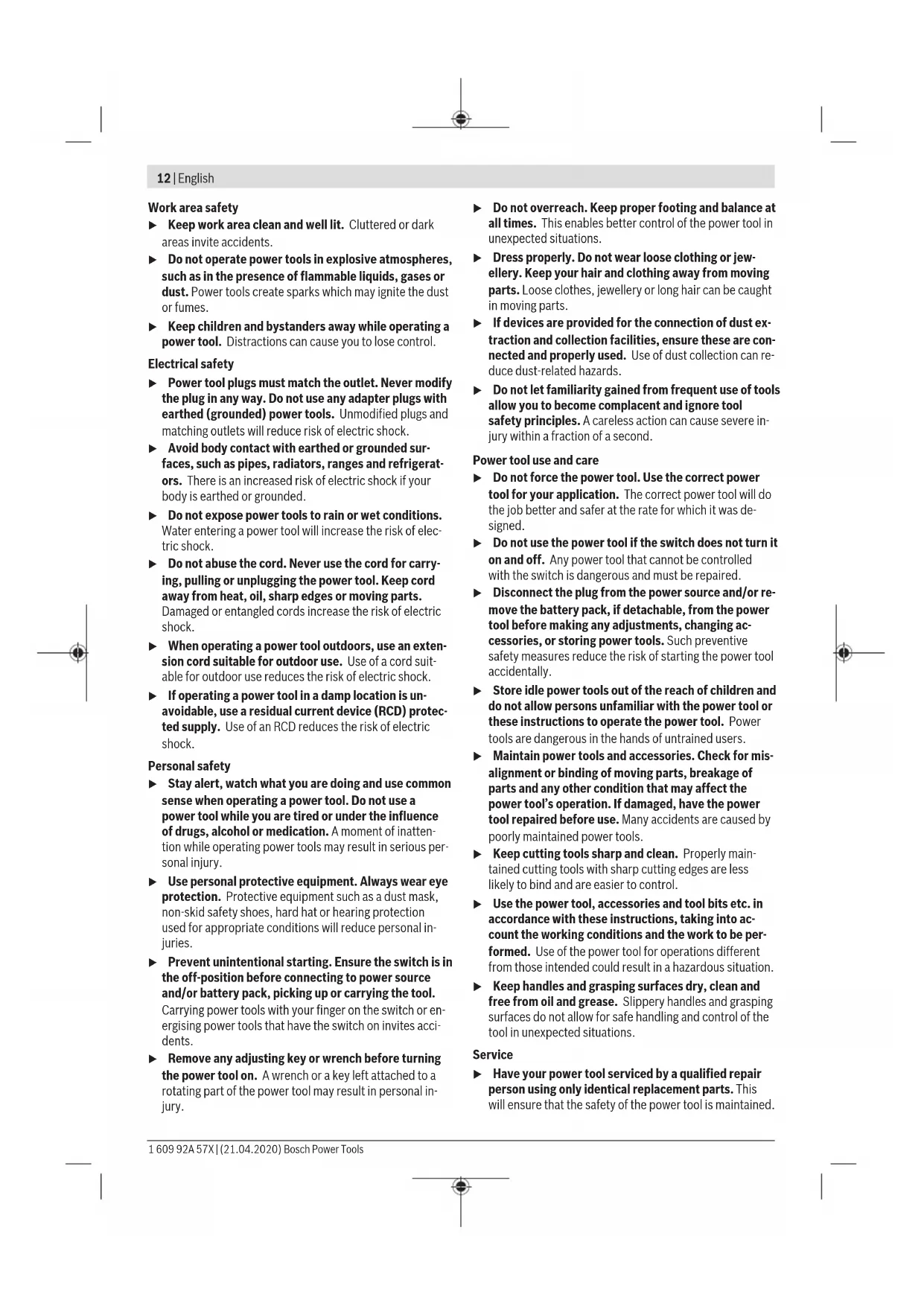 less) power tool. Bosch Power Tools 1 609 92A 57X | (21.04.2020)12 | English