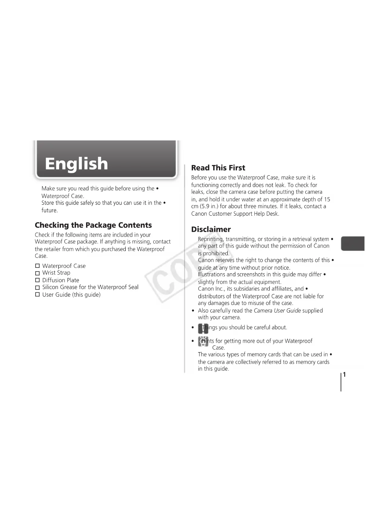 Before using the Waterproof Case, ensure that you read •