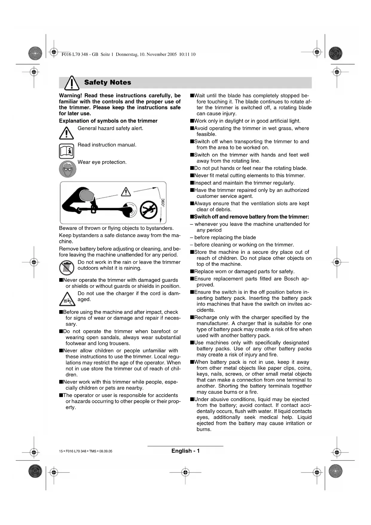 F016 L70 348 - Vord…eite.book Seite 7 Mittwoch, 9. November 2005 1:46 13 14 • F016 L70 348 • TMS • 08.09.05English - 1 15 • F016 L70 348 • TMS • 08.09.05 Warning! Read these instructions carefully, be