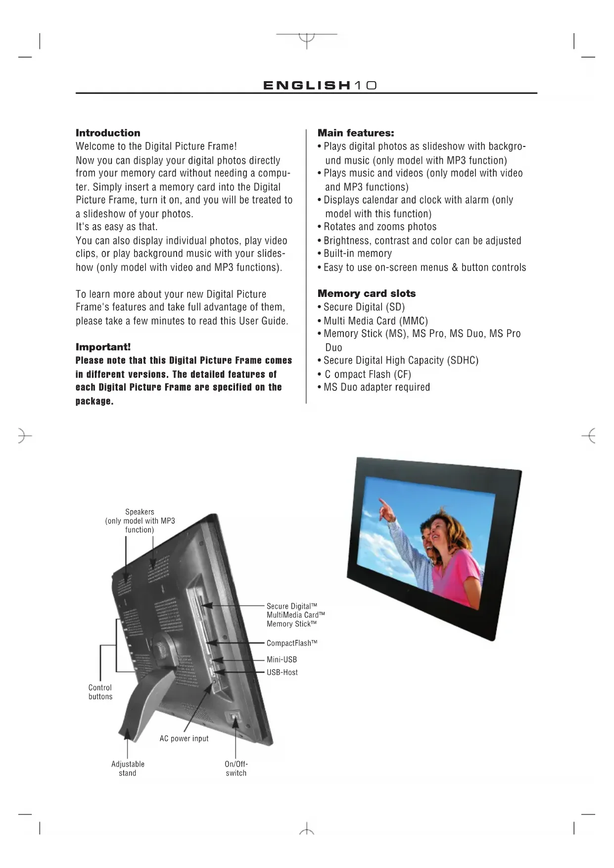 Please note that this Digital Picture Frame comes