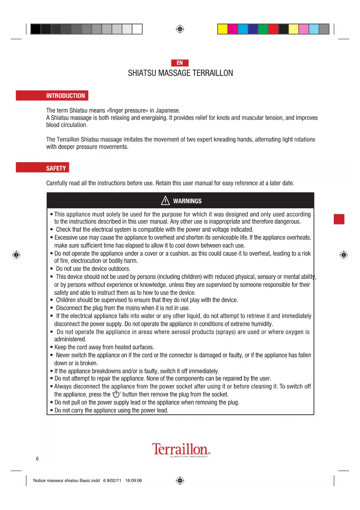 Notice masseur shiatsu Basic.indd 6 8/02/11 16:09:06SHIATSU MASSAGE TERRAILLON EN
