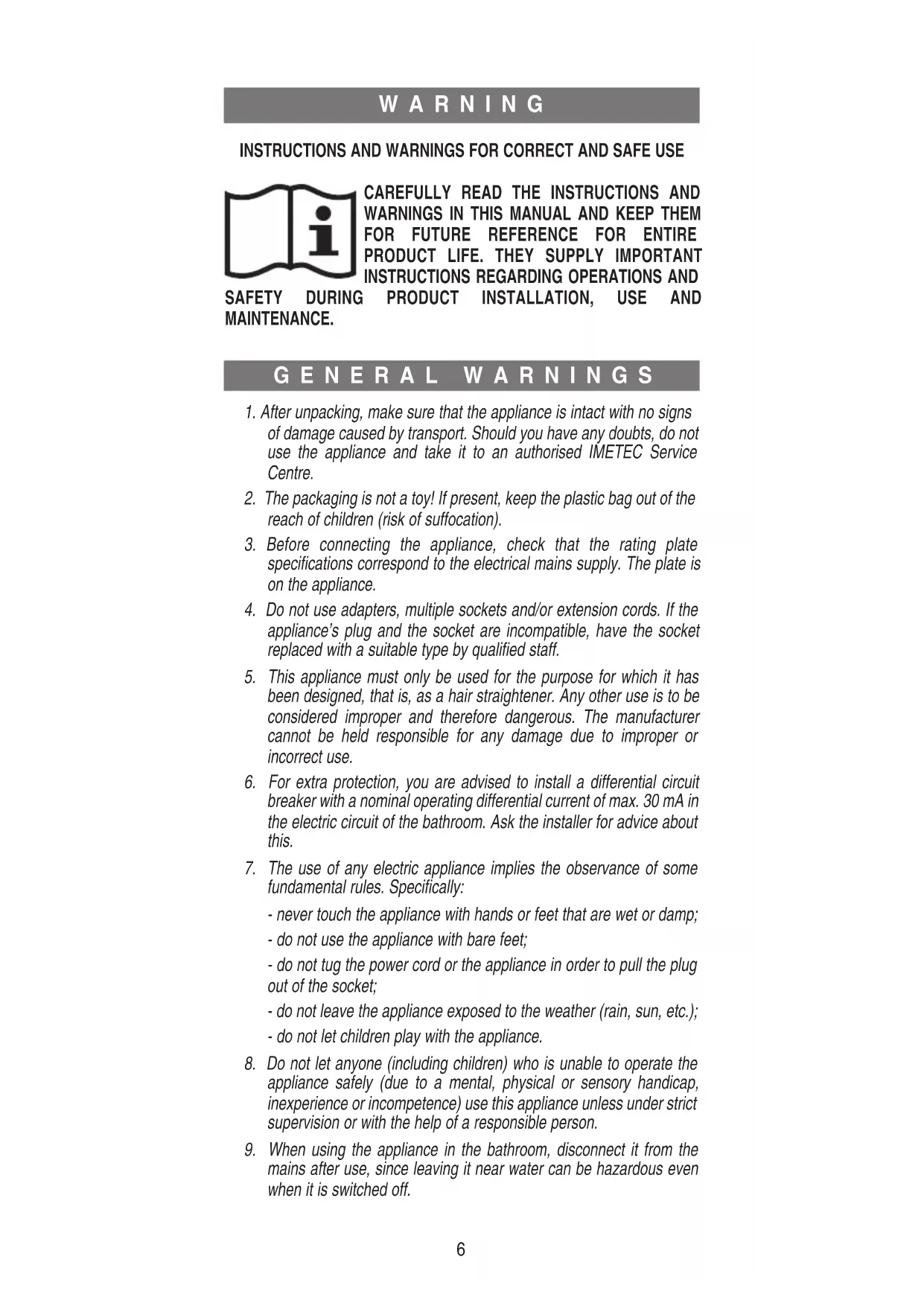 GENERAL INSTRUCTIONS INSTRUCTIONS FOR USE USEFUL ADVICE Quickly gained experience in using your hair straightener will help you