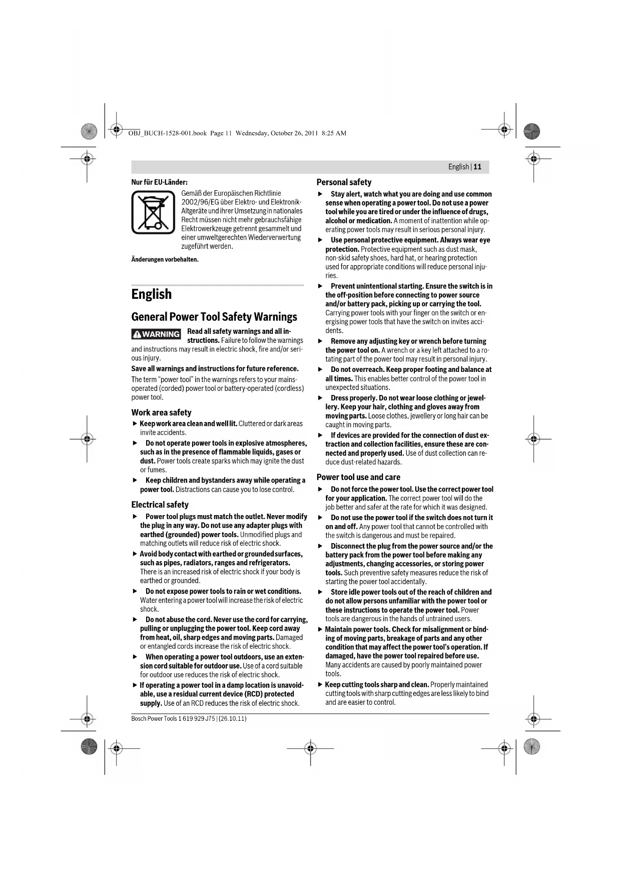 Bosch Power Tools 1 619 929 J75 | (26.10.11)