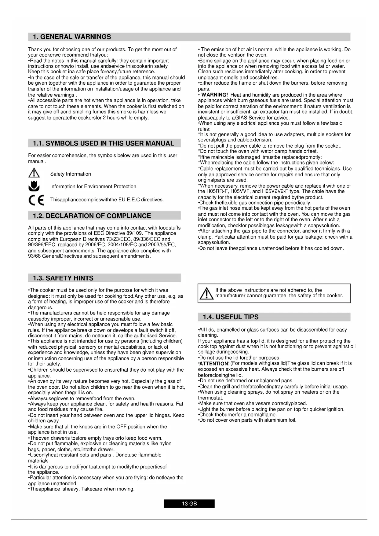 1. GENERAL WARNINGS Thank you for choosing one of our products. To get the most out of