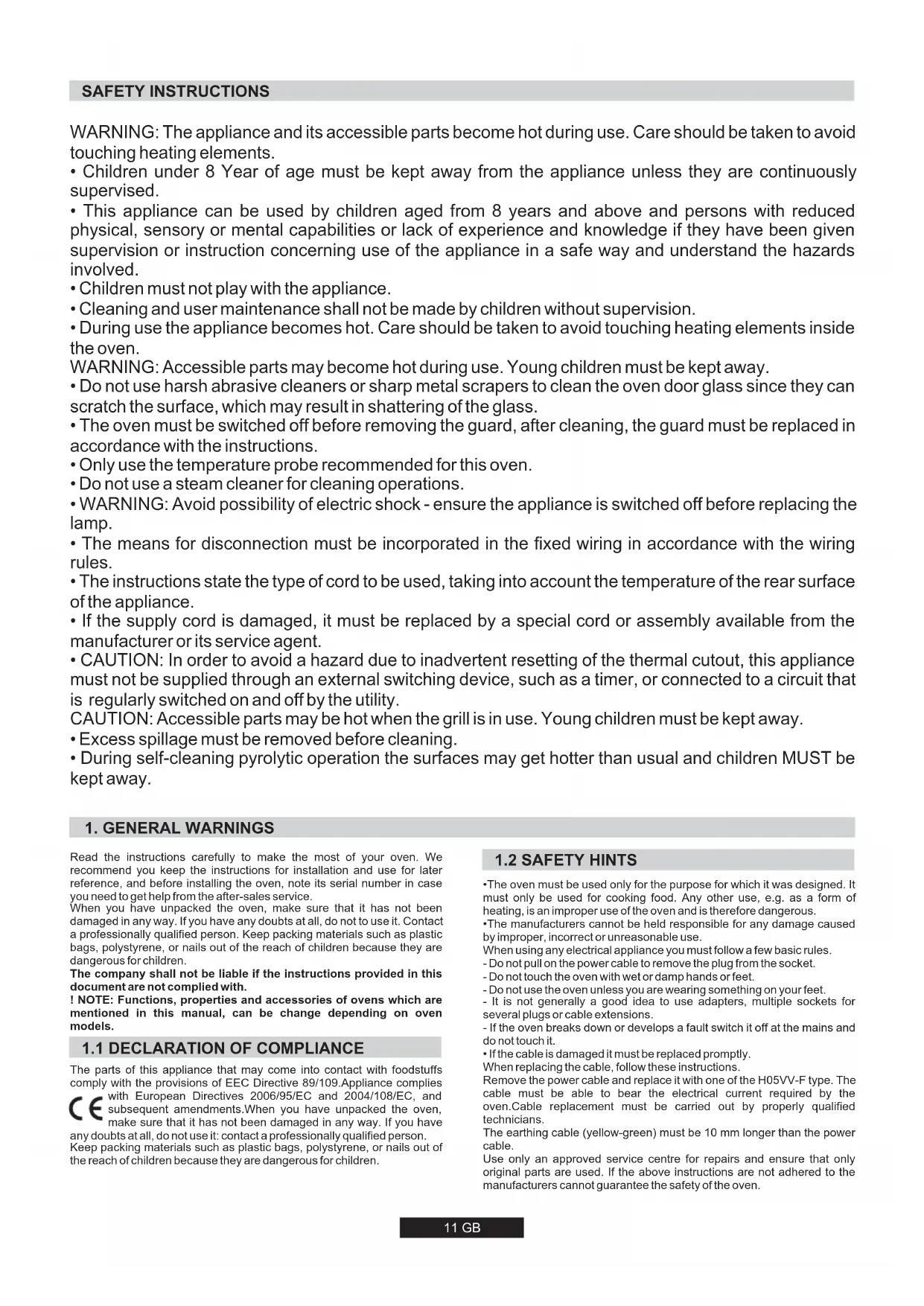 1. GENERAL WARNINGS Read the instructions carefully to make the most of your oven. We