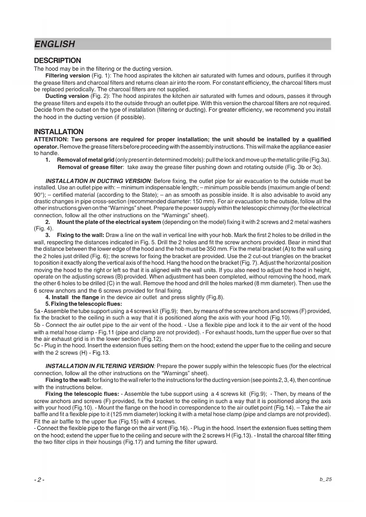 ENGLISH DESCRIPTION The hood may be in the filtering or the ducting version.