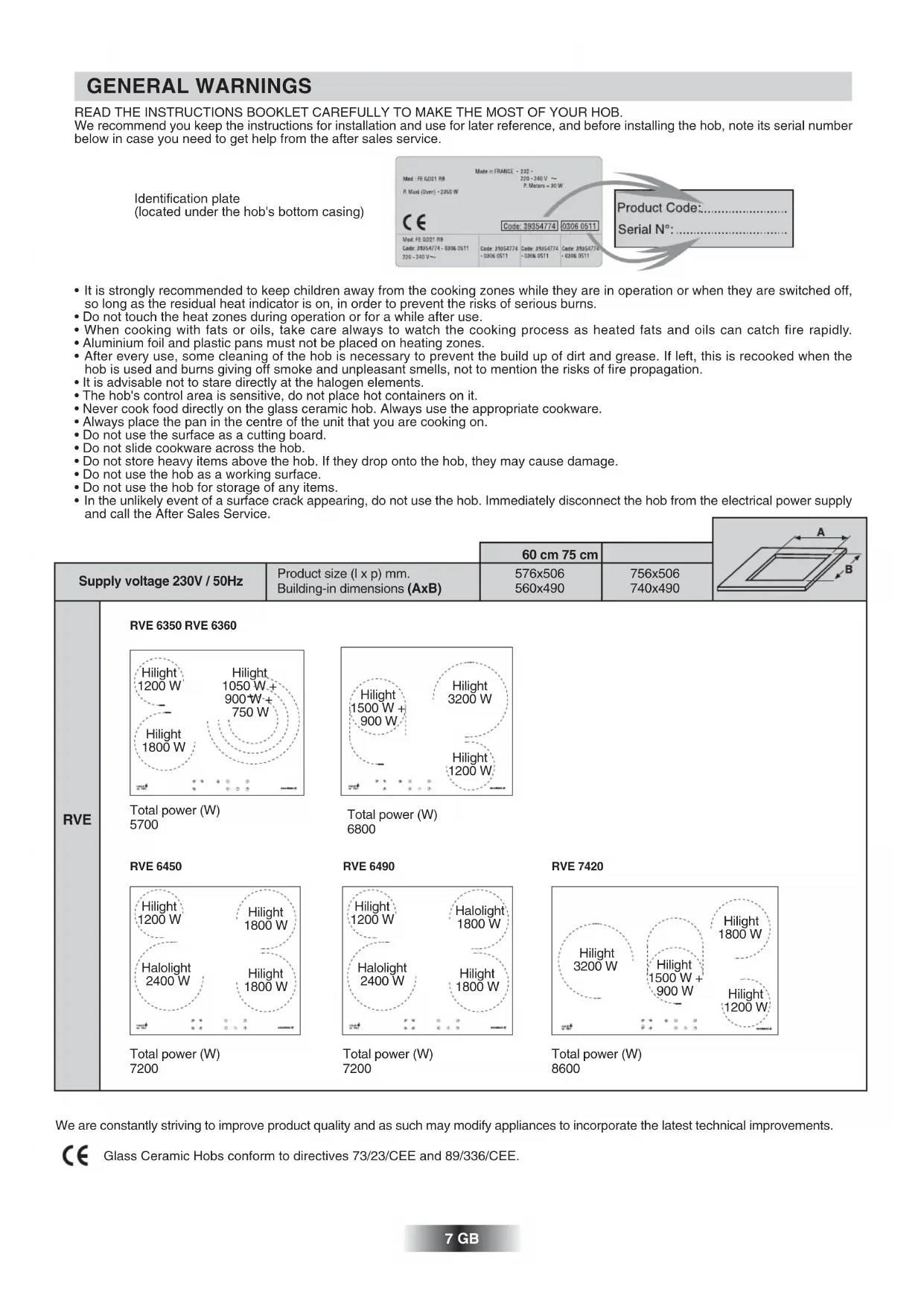 correctement rempli, avec la date d’achat de la table de cuisson.7 GB READ THE INSTRUCTIONS BOOKLET CAREFULLY TO MAKE THE MOST OF YOUR HOB.