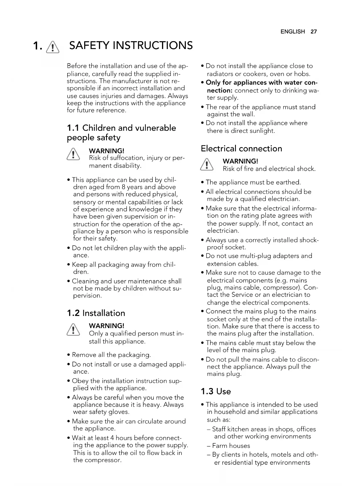 • Do not let children play with the appli-