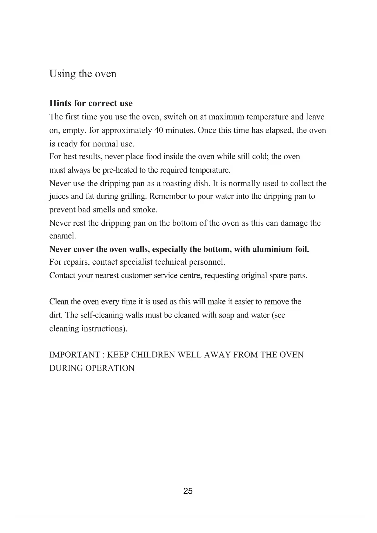 IMPORTANT : KEEP CHILDREN WELL AWAY FROM THE OVEN DURING OPERATION