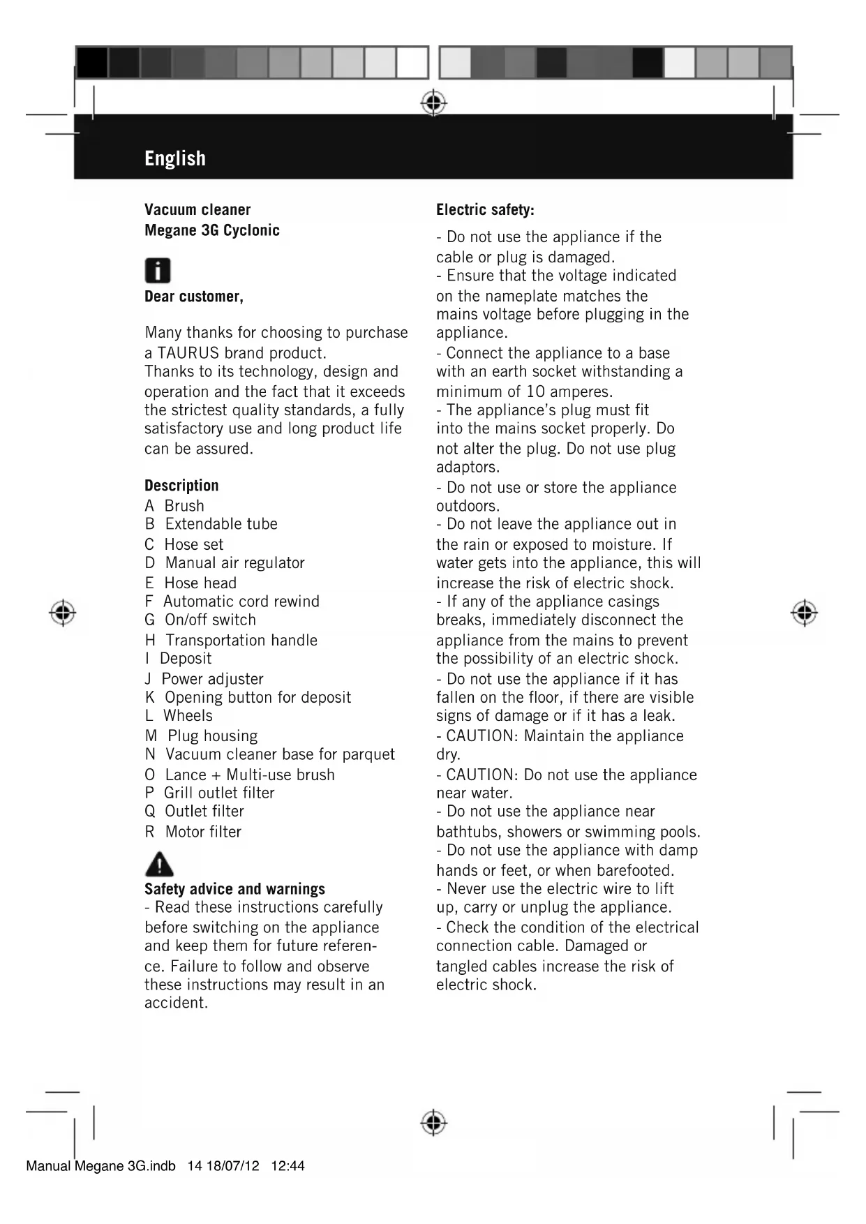 Megane 3G Cyclonic - Vacuum Cleaner TAURUS - Free user manual and instructions