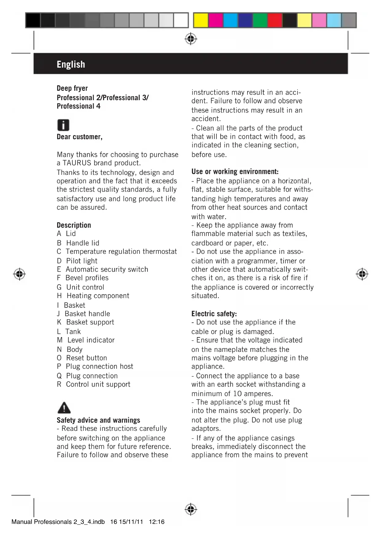 Download the instructions for your Deep fryer in PDF format for free! Find your manual Professional 4L - TAURUS and take your electronic device back in hand. On this page are published all the documents necessary for the use of your device. Professional 4L by TAURUS.