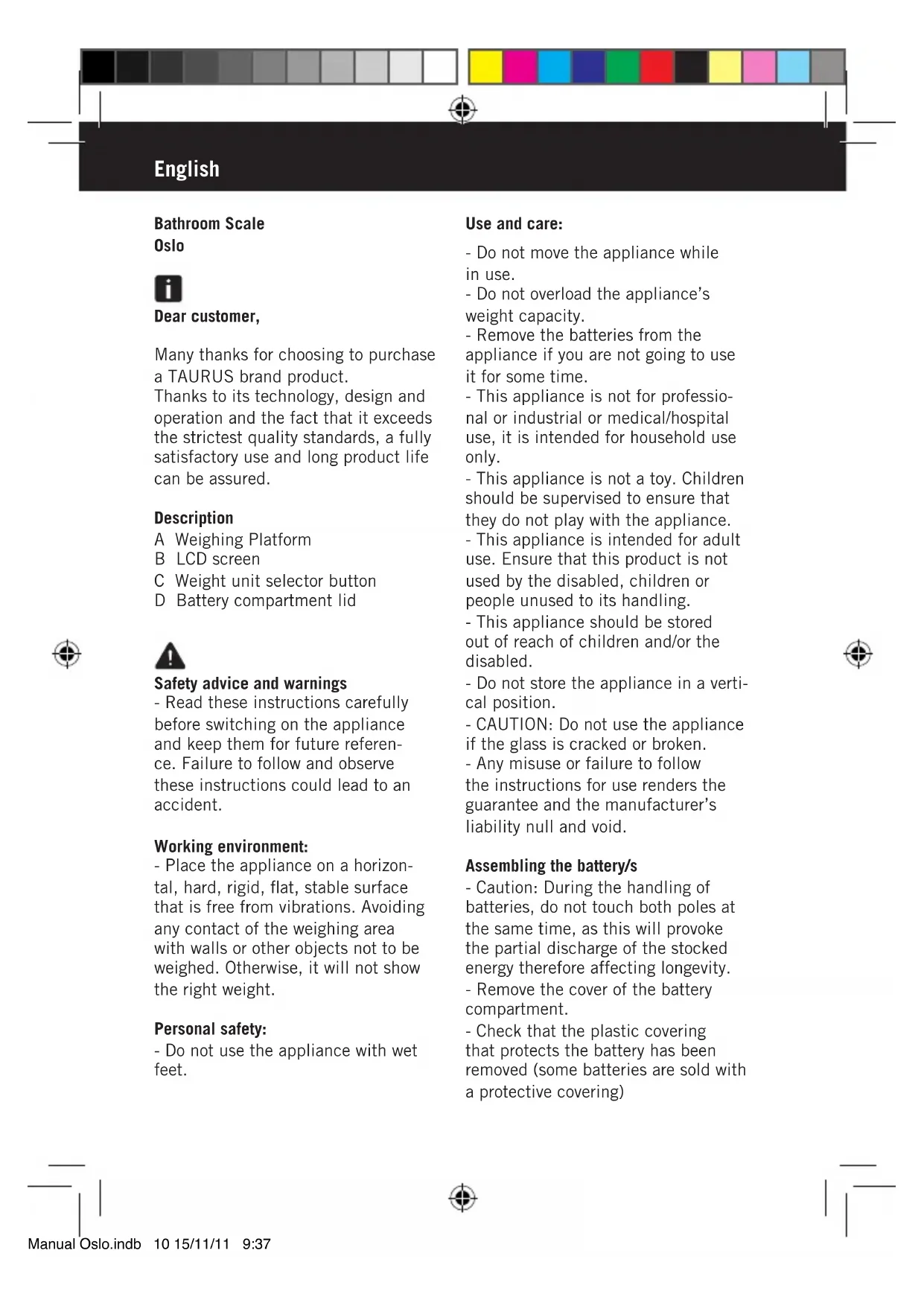 Download the instructions for your Balance in PDF format for free! Find your manual Oslo - TAURUS and take your electronic device back in hand. On this page are published all the documents necessary for the use of your device. Oslo by TAURUS.