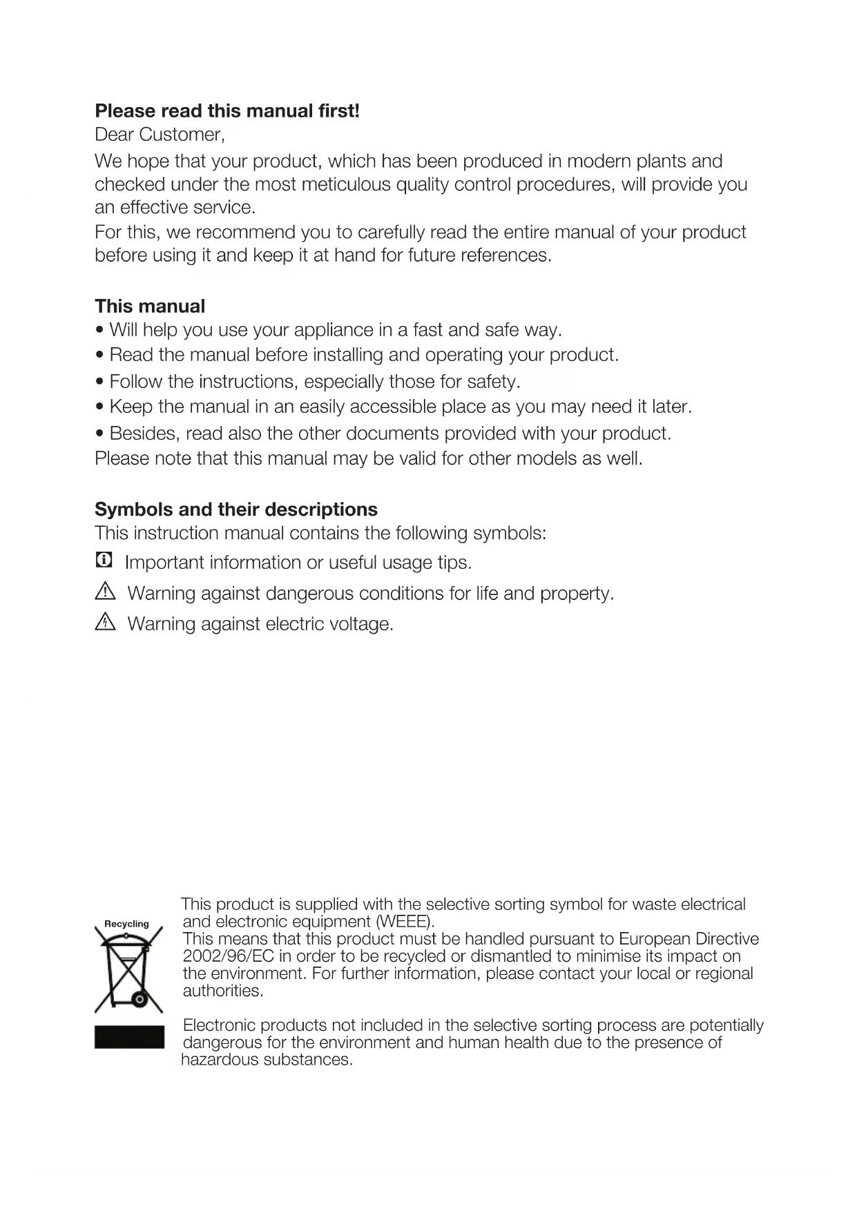 • Will help you use your appliance in a fast and safe way.