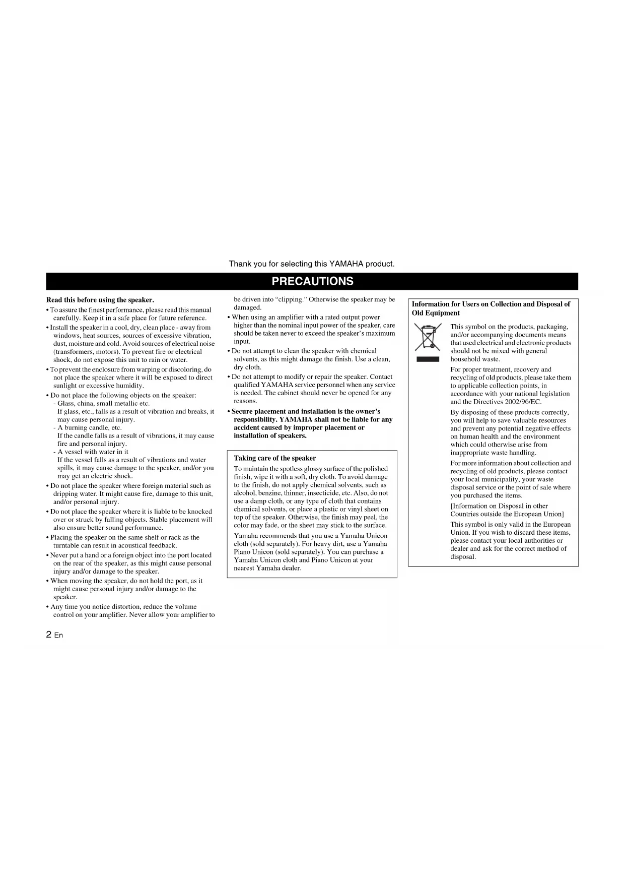 Thank you for having chosen a Yamaha product. In the unlikely event that your Yamaha product needs guarantee