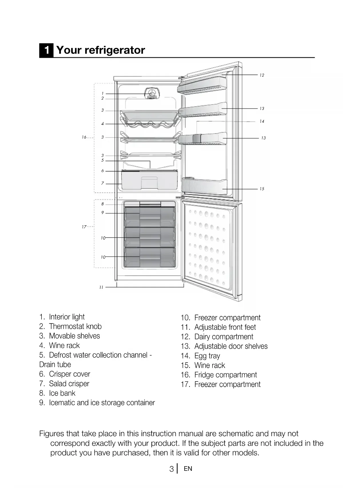 - 1 Your refrigerator 3 2 Important Safety Warnings 4 Intended use p. 4