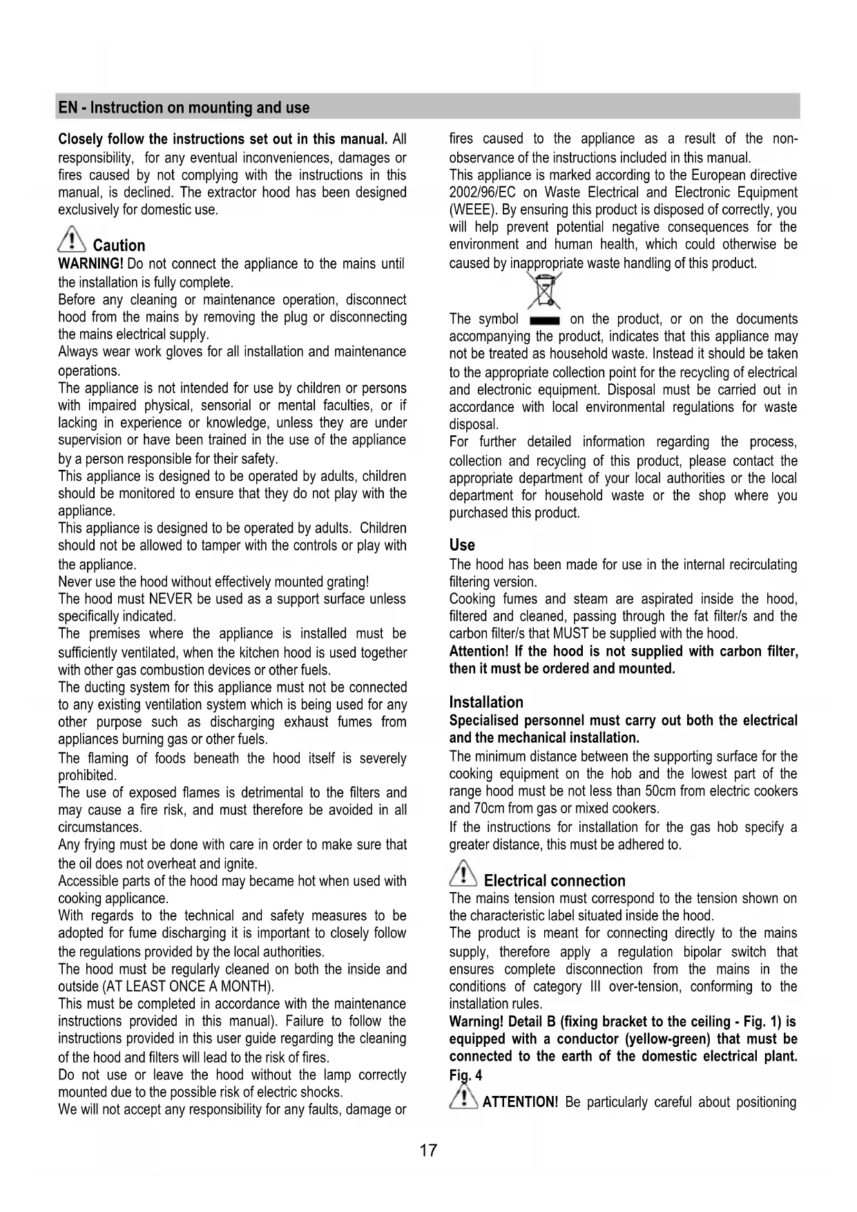 manual, is declined. The extractor hood has been designed