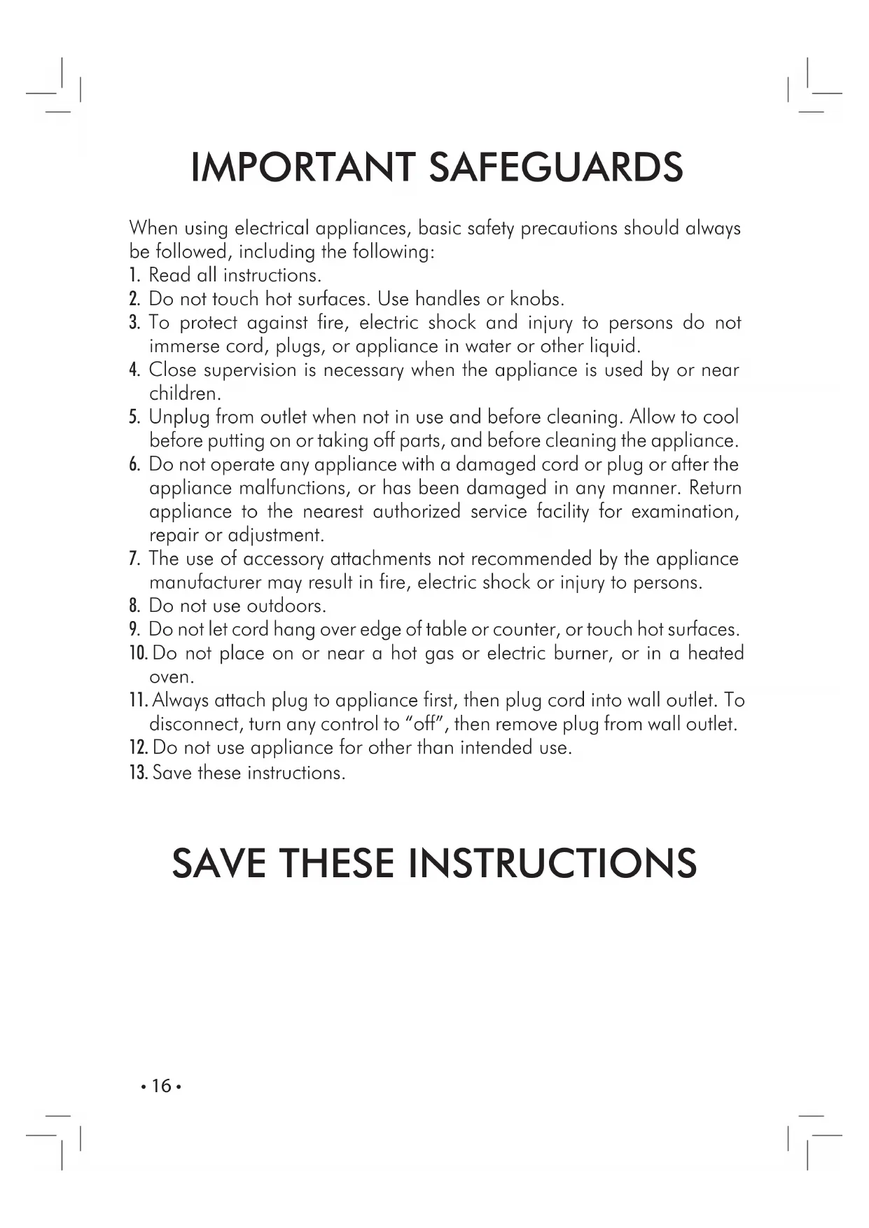 13. Save these instructions.