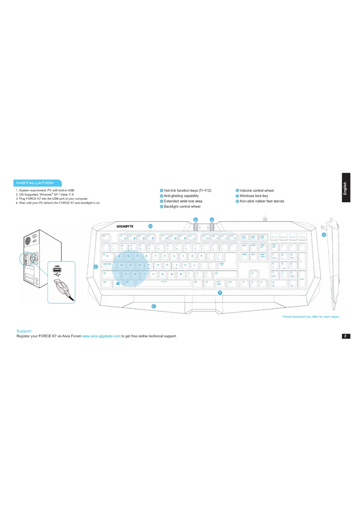 Register your FORCE K7 on Aivia Forum www.aivia.gigabyte.com to get free online technical support.
