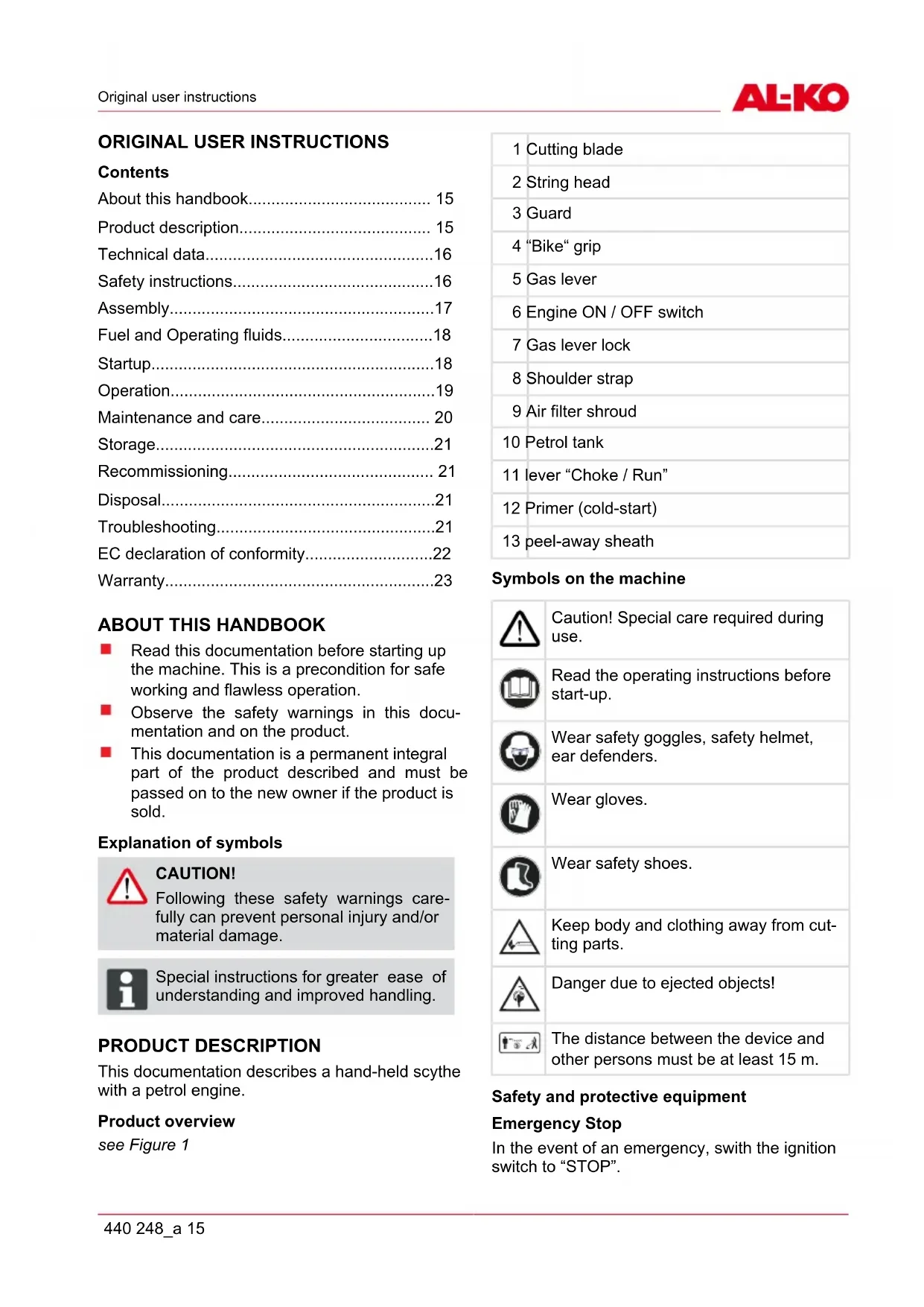Download the instructions for your Tondeuse à gazon in PDF format for free! Find your manual BC 4125 IIS Comfort - AL-KO and take your electronic device back in hand. On this page are published all the documents necessary for the use of your device. BC 4125 IIS Comfort by AL-KO.